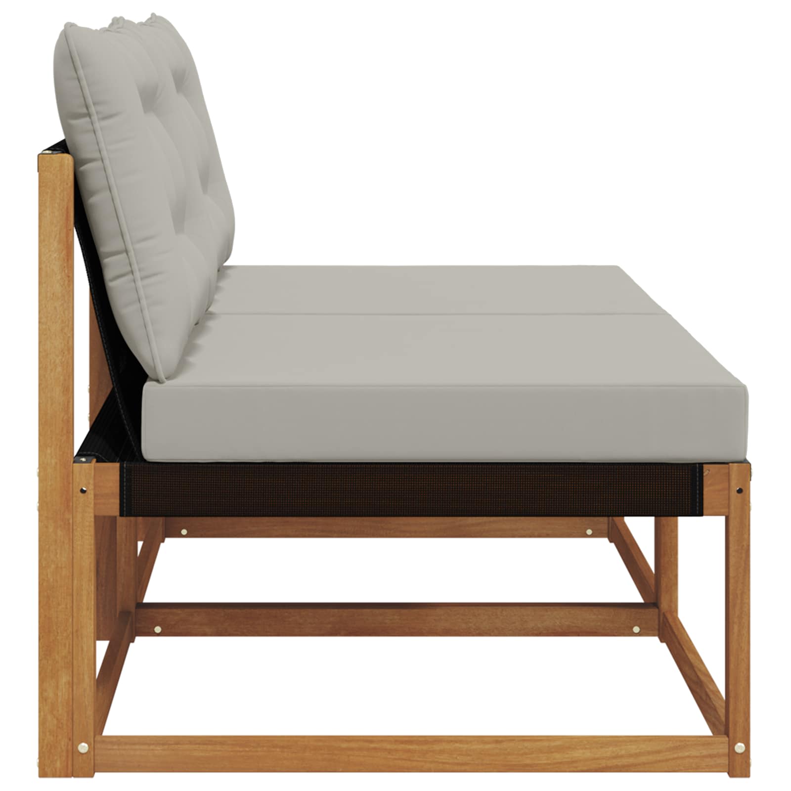Ta zunanja garnitura pohištva preoblikuje vsak balkon, teraso ali vrt v prijeten, stiliziran prostor za sprostitev. Odlično se prilega različnim zunanjim okoljem in ponuja minimalističen dizajn. Izdelana z veliko pozornostjo do podrobnosti, garnitura obogati vsak prostor in zagotavlja udobje v elegantnem okolju. Trden akacijev les Izdelan iz vzdržljivega akacijevega lesa, ta kavč ponuja močno in dolgotrajno podporo. Naravna barva lesa se lepo ujema z okoliško dekoracijo, kar ga naredi tako funkcionalnega kot tudi stilskega za tvoj patio ali teraso. Udobne blazine Vsaka sekcijska enota ima blazine iz kakovostnega poliestra, ki nudijo udobje in dolgotrajno uporabo. Tkanina je mehka in hkrati odporna na vremenske vplive, skupaj s penastim polnjenjem pa zagotavlja optimalno udobje med daljšim sedenjem. Modularna in prilagodljiva zasnova Modularna zasnova omogoča prilagoditev, tako da lahko ustvariš idealno postavitev za različne potrebe in prostore. Primerno za kompaktne ureditve ali za večje družabne postavitve. Vremensko odporen Ta pohištveni kos je zasnovan za uporabo na prostem, ponuja pa vremensko odporno delovanje. Rešetkasta površina omogoča zrak, tako da se les hitreje posuši po dežju in tako zagotavlja udobje in vzdržljivost. Odporna tkanina proti zbledenju Tkanina Textilene je zasnovana za dolgo življenjsko dobo in ohranja živahne barve. Njena trajna površina preprečuje bledenje barv in omogoča dolgoletno zanesljivost, tudi pri uporabi na prostem.