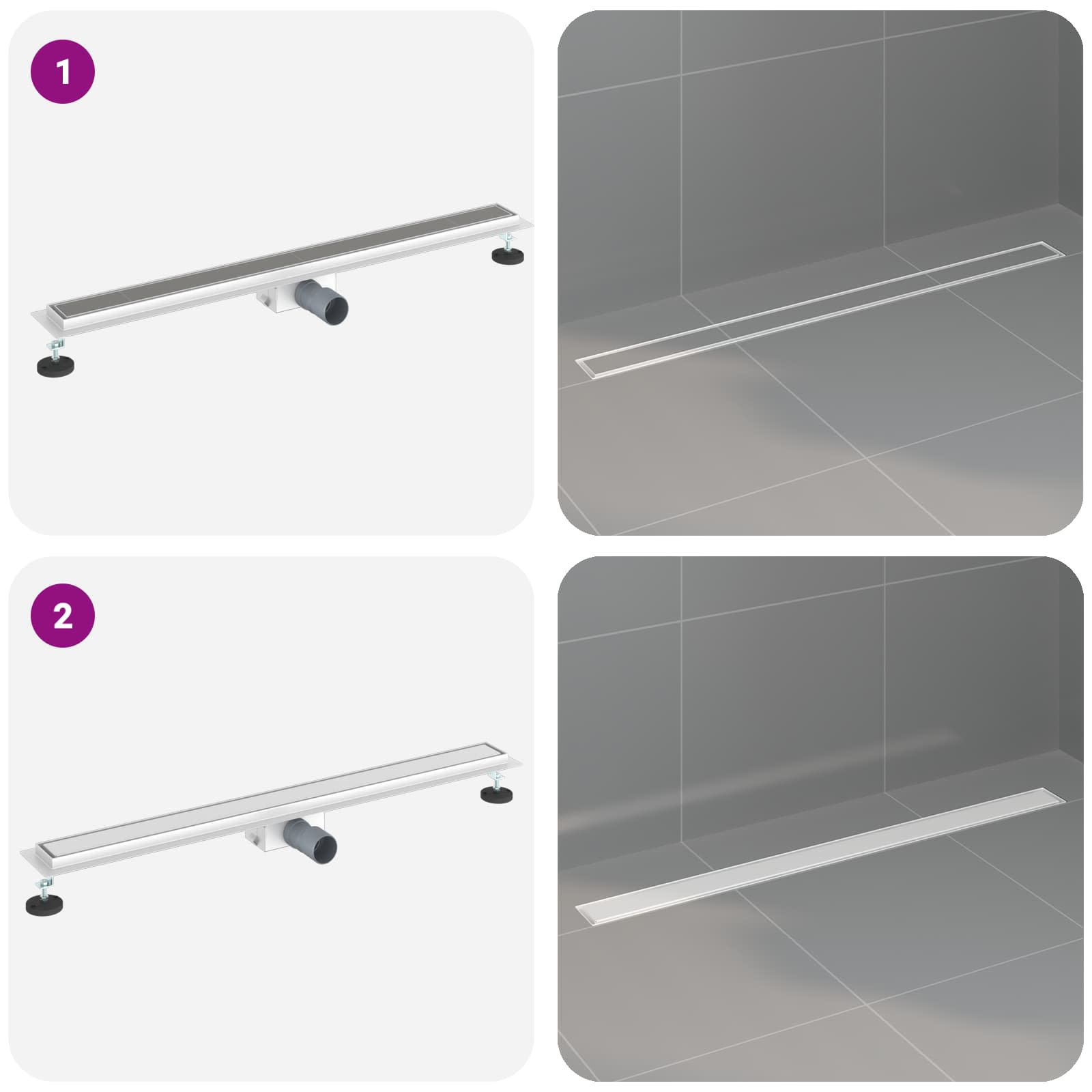 Ta moder tuš odtok združuje stil in funkcionalnost, idealen za vsako moderno kopalnico. S svojo preprosto pravokotno obliko in zasnovo iz nerjavečega jekla, je te odtok zelo praktičen in privlačen, kar izboljša splošni občutek v vaši kopalnici. Višinsko prilagodljiva zasnova Ta tuš odtok omogoča nastavitev višine od 0 do 30 mm, kar olajša prilagoditev različnim višinami tal. Zaradi te prilagodljivosti se super prilega v vsako kopalnico, obenem pa nudi rešitve za neravne površine. Nerjaveča jeklena konstrukcija Odtok je izdelan iz močnega nerjavečega jekla 304, ki mu daje dolgo življenjsko dobo in odpornost. Polirana površina prinaša eleganco in zagotavlja dobro reševanje vode. Pravokotna oblika za optimalno drenažo Ta zasnova ne le da izgleda moderno, ampak tudi izboljšuje pretok vode ter zmanjšuje luženje v tušu. Učinkovit dizajn zagotavlja čistejšo in bolj varno okolje za kopanje. Celovite komponente vključene Dodatne komponente vključujejo nogo z nastavljivo višino, vodoodporno krpo in plastično cev za vso funkcionalnost. Te elemente so zasnovani tako, da so enostavni za namestitev in učinkoviti. Enostaven postopek sestavljanja Sestavljanje je preprosto, potrebujete le izvijač in škarje, zato jo lahko postavi ena oseba. Tako kmalu uživate v novi in izboljšani funkcionalnosti vašega tuša.