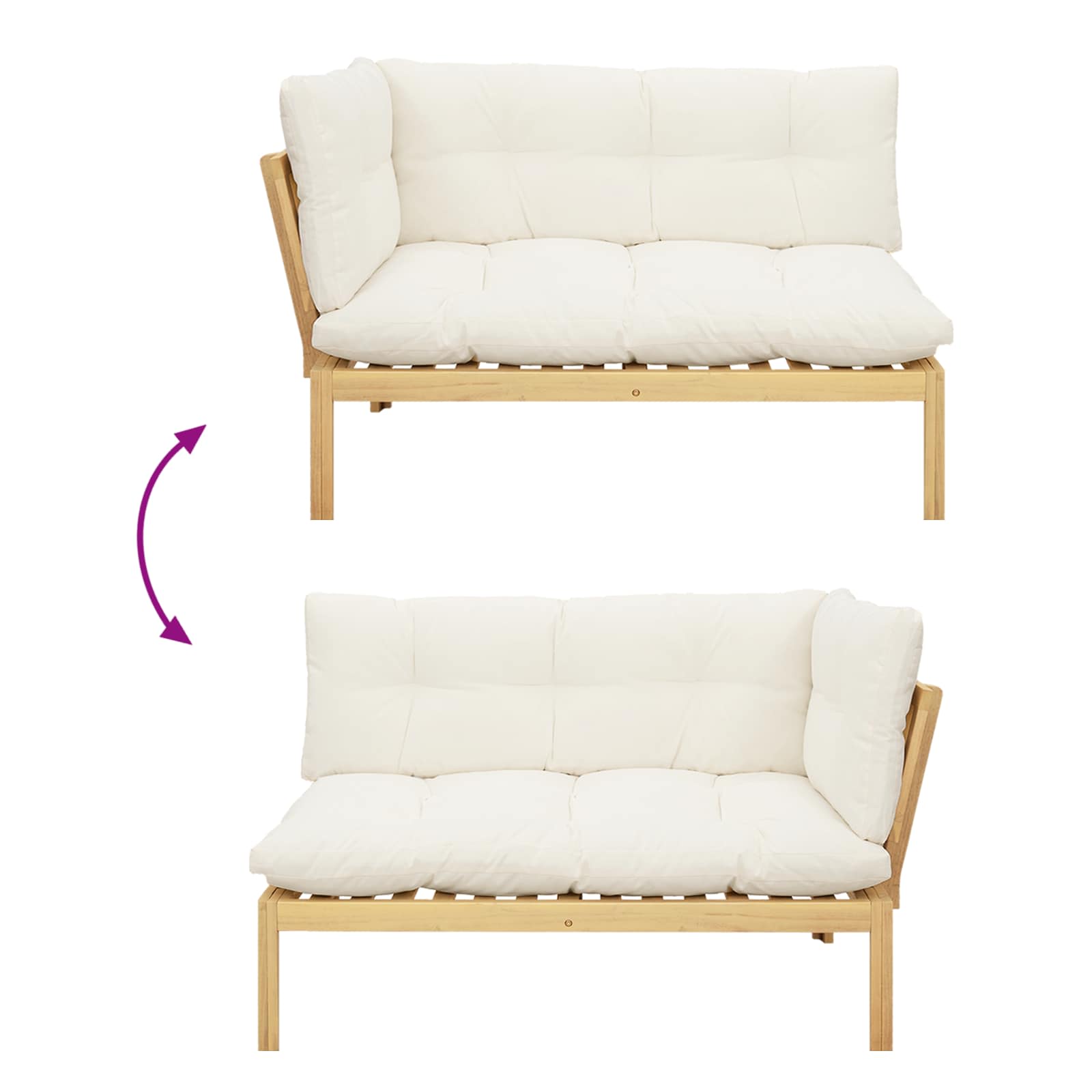 Ta rustikalni vrtni kavč iz palet je oblikovan za udobno sedenje na prostem, z naravnim videzom, ki pritegne pogled. Narejen iz trdnega akacijevega lesa, okvir pokaže tople odtenke in značilne vzorce lesa, ki se odlično ujemajo z vrtnarskimi, patio ali terasnimi prostori. Kotna zasnova ustvarja sproščen prostor za druženje, medtem ko priložena nizka miza ponuja priročno mesto za pijače ali manjše predmete. Blazine iz penastega materiala in rahlo nagnjeno naslonjalo zagotavljajo udobno sedenje za vsakodnevno sprostitev zunaj. Trdna konstrukcija iz akacijevega lesa Okvir, naslonjalo, noge in površina so izdelani iz trdnega akacijevega lesa, znanega po svoji naravni odpornosti in značilni teksturi. Ta les daje prijeten, vroč videz in zagotavlja stabilno strukturo za zunanjo uporabo. Fiksna mrežasta zasnova Zasnova z nefleksibilnimi letvami nudi trdno podporo za udobno sedenje in je primerna za redno uporabo na prostem. Vremensko odporne lastnosti Kavč je zasnovan za zunanje okolje in pomaga ohraniti svoj videz ter strukturo skozi vse letne čase. Primerno je za rabo v sončnih ali deževnih dneh, kar omogoča dolgoročno uporabo na prostem. Kotna lounge postavitev s priloženo mizo Njegova kotna zasnova optimizira zunanji prostor in hkrati ustvari sproščen lounge prostor. Nizka miza je vključena, da omogoči priročno površino za pijače, prigrizke ali dekoracijo. Enostavna vzdrževanje Le obrišite kavč z vlažno krpo, da ohranite njegov videz pri vsakodnevni rabi. Minimalna potreba po vzdrževanju omogoča, da bo idealen za redno uporabo na prostem. Največ 110 kg na sedež.
