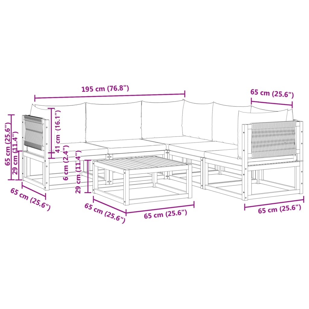 6-delni vrtni komplet sedežnih garnitur z blazinami, akacijev les in vrv