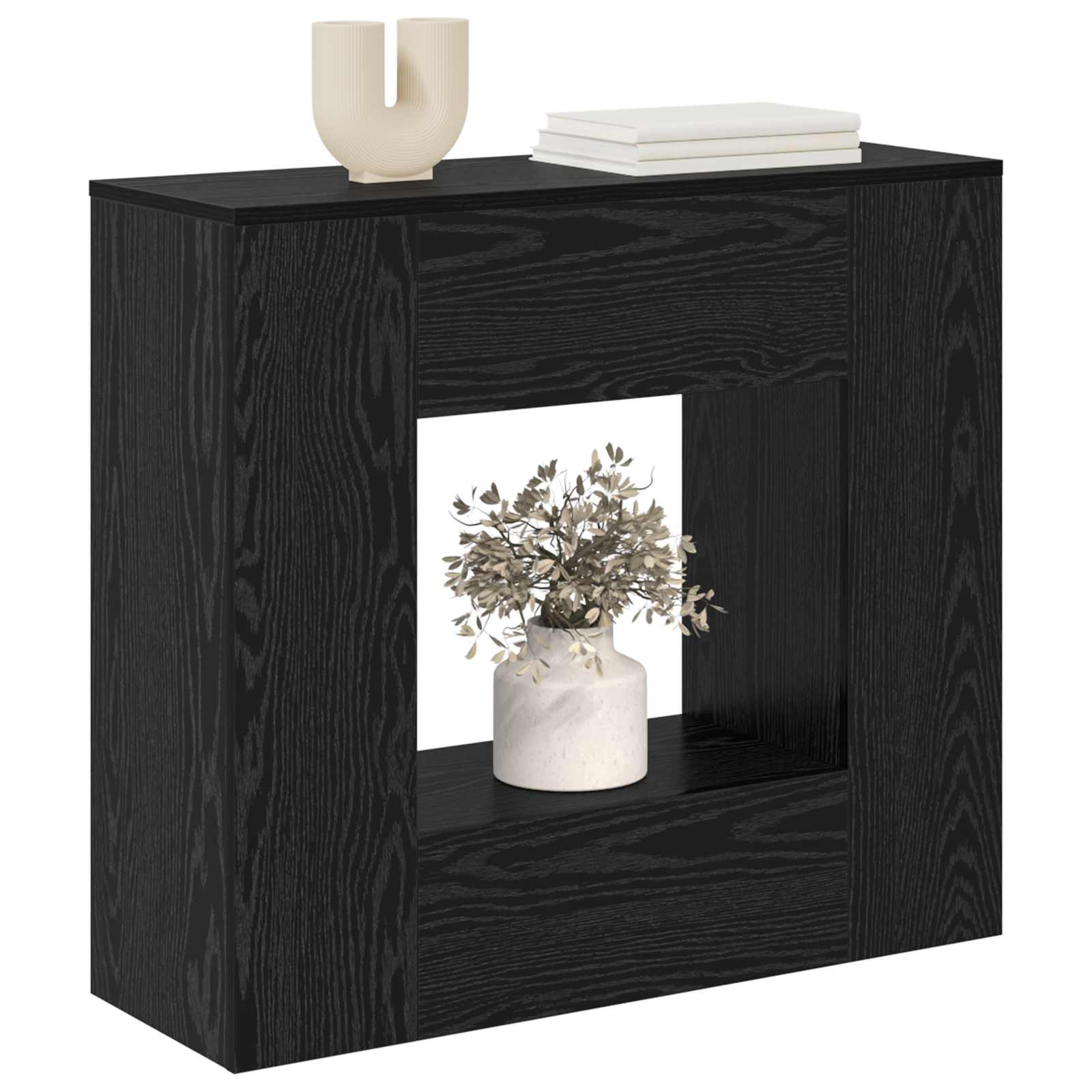 Ta konzolna miza predstavlja eleganco in funkcionalnost, idealna za vse, ki obožujejo brezčasne dizajne v svojih prostorih. Njena privlačna oblika in praktičnost naredijo, da jo lahko uporabljaš v različnih prostorih: v vhodu ali dnevni sobi, saj ponuja dobro površino za razstavljanje in shranjevanje. Materiali: Naša konzolna miza je narejena iz vrhunskih materialov, ki zagotavljajo odličen občutek, obljubljajo pa tudi dolgotrajnost. Njena odpornost proti vsakodnevni obrabi jo naredi za trajen kos v tvojem domu. Površine iz kvalitetnih materialov se lepo dopolnjujejo z večino notranjih slogov in dodajajo pridih sofisticiranosti kjerkoli jo postaviš. Vključene komponente: S prostornimi policami in predali ta konzolna miza ponuja dobro rešitev za shranjevanje tvojih osnovnih stvari. Njene pametno zasnovane komponente, kot so predali in odprte police, poskrbijo za red in zmanjšujejo nered v bivalnih prostorih. Lastnosti / Funkcija / Oblikovanje: Ta miza ni samo kos pohištva, njene nastavljive lastnosti jo naredijo prilagodljivo tvemu potrebam. Idealna je za shranjevanje in razstavljanje knjig, dekoracij ali elektronike, njena zasnova pa zagotavlja stil in udobje. Mešanica estetike in funkcionalnosti jo dela za odlično izbiro za vse, ki iščejo praktično eleganco. Priporočene uporabe: Ta konzolna miza je super za domove, ki iščejo urejen prostor, brez težav pa se prilega v vhode, dnevne sobe ali celo domače pisarne. Njena vsestranskost ji omogoča, da služi tako kot prostor za dekoracijo kot kot funkcionalen kos za shranjevanje, kar jo dela za nujno dodatno opremo v sodobnem življenju. Vzdrževanje: Ohranite jo čisto z nežnim brisanjem s suho krpo. Da zadrži lep videz, se izogibajte močnim čistilom. Z malo truda ostaja videti odlično, kar omogoča, da je središče tvoje dekoracije doma.
