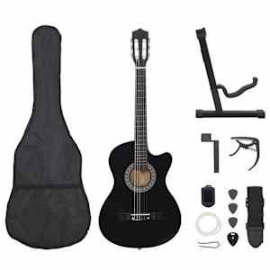 Naša kavbojska kitara je odličen instrument za začetnike, amaterje in glasbenike na vseh nivojih. Poleg kitare paket vsebuje tudi torbo za kitaro, trak, trzalice, držalo za trzalice, komplet kitarskih strun, navijalo za strune, kapodaster, kromatski uglaševalec in držalo za kitaro. Ta kitara je izdelana iz trdnega lipovega lesa s 6 strunami. Odlična kakovost zvoka in čudovit dizajn zagotavljata, da je to zelo dragocen instrument. Z lestvico velikosti 63 cm ta akustična kitara ponuja vse, kar potrebujete, da postanete odličen kitarist. Z uglaševalcem lahko bolje uglasite strune kitare, s kapodastrom pa lahko prilagodite zvok kitare. 3 trzalice se uporabljajo za ubiranje strun, shranite pa jih lahko v držalo. Običajno se uporabljajo namesto prstov, na kitaro pa lahko seveda igrate tudi s prsti. Navijalo za strune je priročen pripomoček, s katerim je postopek menjave strun lažji. Priložena torba in trak sta popolna za potujoče glasbenike ter za enostavno shranjevanje. Poleg tega lahko svojo kitaro postavite v držalo za kitaro, ki je zelo priročno. Naš komplet kitare je preprost za sestavo.