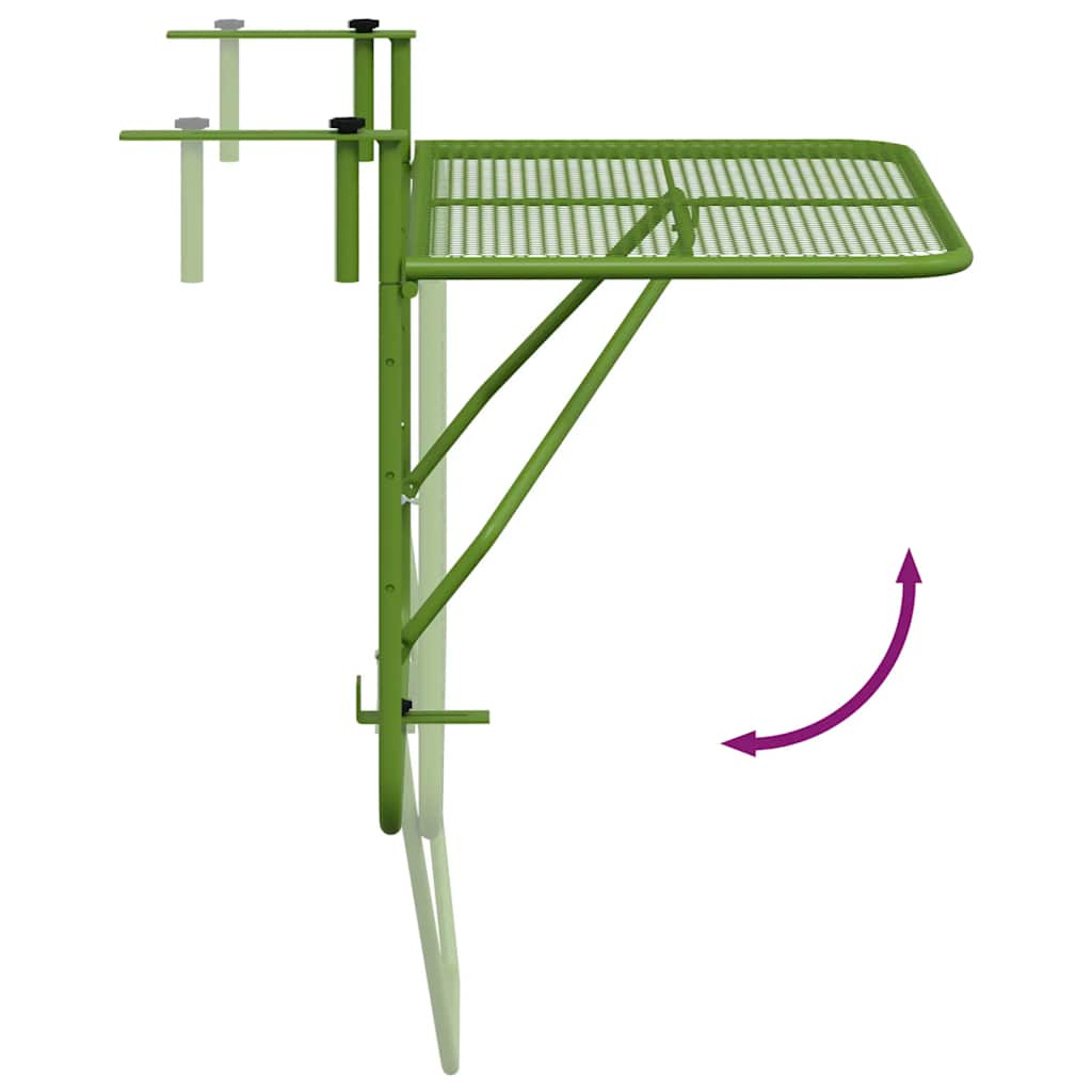 Ta balkonska mizica bo odličen dodatek za vaš balkon. Brez težav jo lahko zložite in tako prihranite prostor, ko ni v uporabi. Večnamenska zasnova: Ta balkonska mizica je popolna za vašo verando, teraso, ograjo ali balkon, ne glede na to, ali jo uporabljate kot klubsko mizico za odlaganje pijače ali priročno površino za shranjevanje predmetov, kot so vrtno orodje in lončnice.Vrhunski material: Stranska mizica je izdelana iz jekla, ki je vzdržljivo, enostavno za vzdrževanje in odporno na vremenske vplive. Mrežast dizajn in e-premaz vašemu balkonu dodata industrijski šarm.Prostorsko varčna: Mizica med uporabo zavzame zelo malo prostora in se zlahka zloži, ko je ne potrebujete, kar omogoča enostavno shranjevanje. Opomba:Da bi podaljšali življenjsko dobo vašega zunanjega pohištva, vam priporočamo, da ga zaščitite z vodoodporno prevleko.