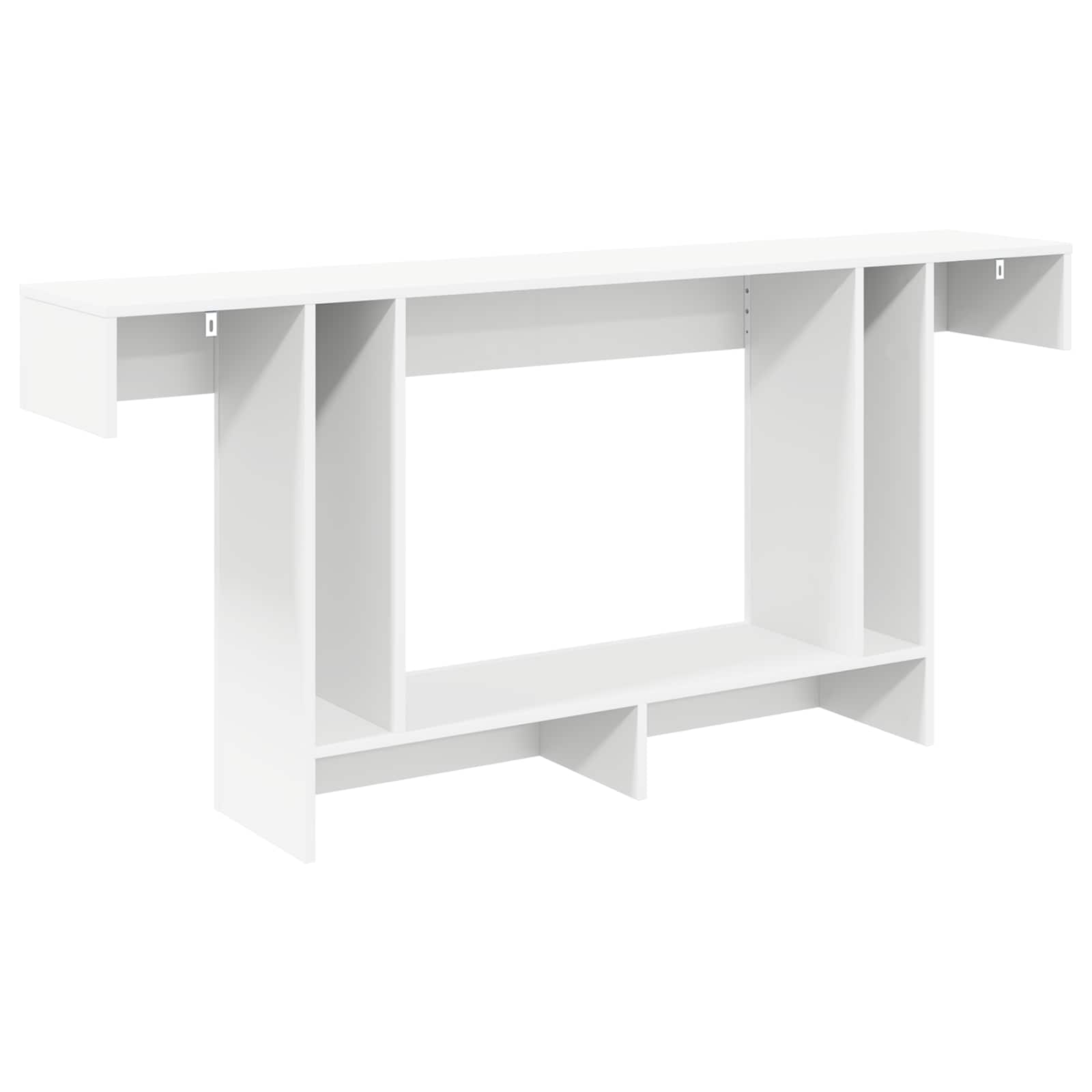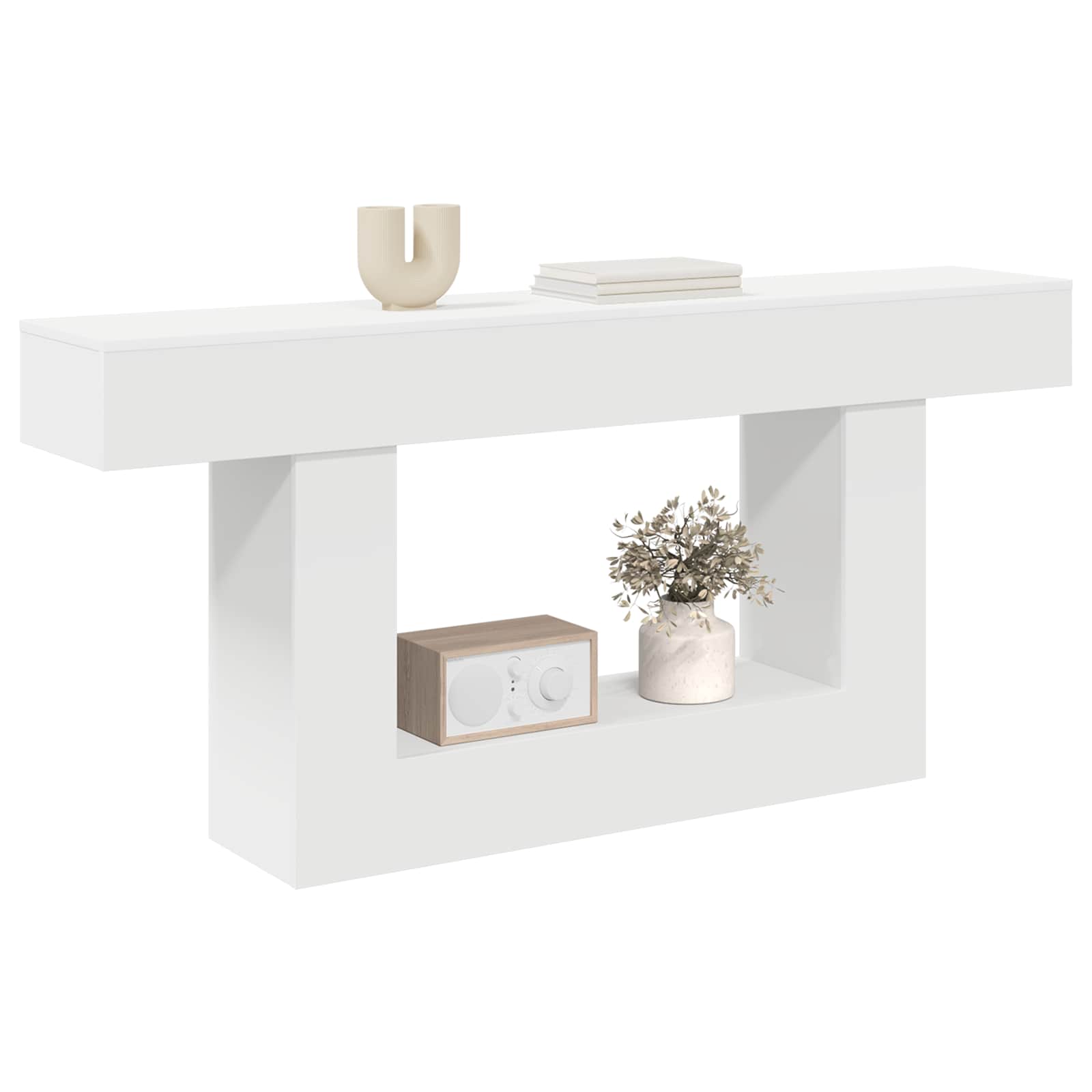 Ta konzolna miza dodaja moderno eleganco vašemu prostoru, hkrati pa se ponaša s čistimi linijami in sodobno zasnovo. Popolna za hladnejše dni, dopolnjuje zimsko tematiko s svojo elegantno strukturo in funkcionalnostjo. Zasnovana je za vse, ki cenijo stil in praktičnost, ponuja veliko rešitev za shranjevanje brez kompromisov pri vizualni privlačnosti. Sodoben estetski videz: Konzolna miza ima minimalističen slog, ki se odlično vnese v sodobne bivalne prostore. Njena brezčasna eleganca je privlačen dodatek v vhodih, dnevnih sobah ali jedilnicah. Funkcionalno shranjevanje: Opremljena z več predelki, ta miza ponuja raznolike možnosti za shranjevanje knjig, dekoracij ali drugih osebnih stvari. Premisljen razpored poskrbi za enostaven dostop in dobro organizacijo, kar pripomore k urejenosti vašega doma. Močna zgradba: Zasnovana za vsakodnevno uporabo, ta miza je robustna in zanesljiva. Kakovostni materiali zagotavljajo, da ostane lepa in funkcionalna skozi zimske mesece ter dlje. Vsakdanji dekorativni kos: Idealna za domove, ki potrebujejo tako estetski videz kot tudi uporabnost, se ta miza lahko stilizira z različnimi sezonskimi dodatki, ki spreminjajo prostor. Pazljivo je potrebno sestavljanje: Sestava te konzolne mize je enostavna, vendar jo je najbolje izvesti v paru, saj to omogoča varno in zanesljivo namestitev.