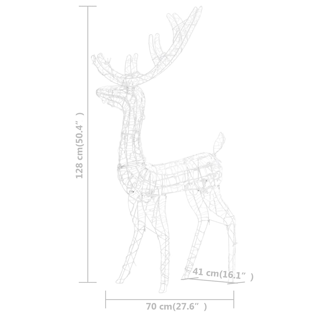 Osvetlite svoj dom in praznujte božič s to družino jelenov. Ta dekoracija v obliki družine jelenov z modrimi lučkami bo poudarila resnično lepoto božičnih praznikov! Ta božična dekoracija iz akrila izgleda razkošna, ledena in sijoča ter lepo osvetli okolico. Osvetljena je z 300 LED lučkami, ki so energijsko varčne in dolgotrajne. Ima 8 različnih svetlobnih učinkov: kombinacija vseh učinkov, počasno svetenje, utripanje / bliskanje, valovito, tekoče / tekoča voda, zaporedno, stalno prižgano in počasno pojenjanje. Lučke čudovito svetijo in ustvarjajo čarobno praznično vzdušje. Opomba: Priložen USB ni vodoodporen, zato mora biti ta del zaščiten pred vodo. Izdelke lahko uporabljate tudi na prostem, saj je dekoracija opremljena s 5 m vodoodpornim kablom. Izdelek ima priključek USB, vendar certificiran 5V vir napajanja USB ni priložen. GPSR