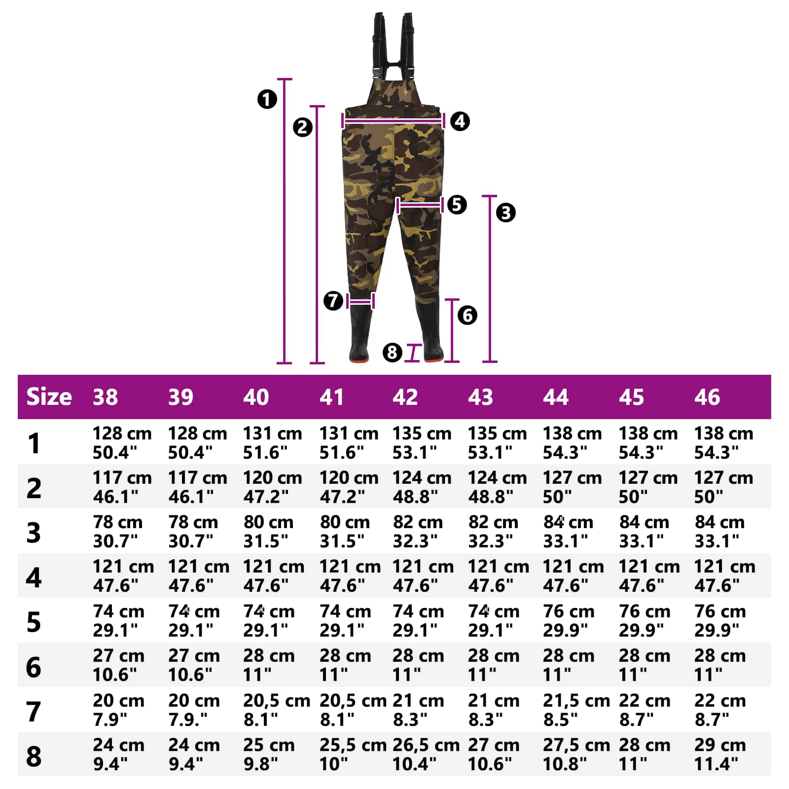 Ti čevlji so narejeni za vzdržljivost in prilagodljivost, zato so super za ribolov, lov, kmetijstvo in druge aktivnosti na prostem. Vodoodporen material: Narejena iz PVC-premazanega poliestra, kar je udobno znotraj in trpežno zunaj. Qiltniken in lepljeni šivi preprečujejo vdor vode in zagotavljajo zanesljivo vodoodpornost. Zanesljiva zaščita: Ti čevlji vas ščitijo pred vodo, blatom in drugimi zunanjimi elementi, tako da ostanete suhi in udobni pri delu ali na prostem. Nastavljivi in udobni: Ribolovni čevlji imajo nastavljive naramnice, kar omogoča enostavno oblačenje in slačenje ter udobno nošnjo. Vgrajeni čevlji za udobje: Prilagojeni čevlji omogočajo nošenje brez dodatne obutve, kar jih naredi enostavne za oblačenje. Večnamenskost: Ti ribolovni čevlji so primerni za ribolov, kmetovanje in splošne aktivnosti na prostem, kot je hoja po mokrih ali blatnih okoljih.