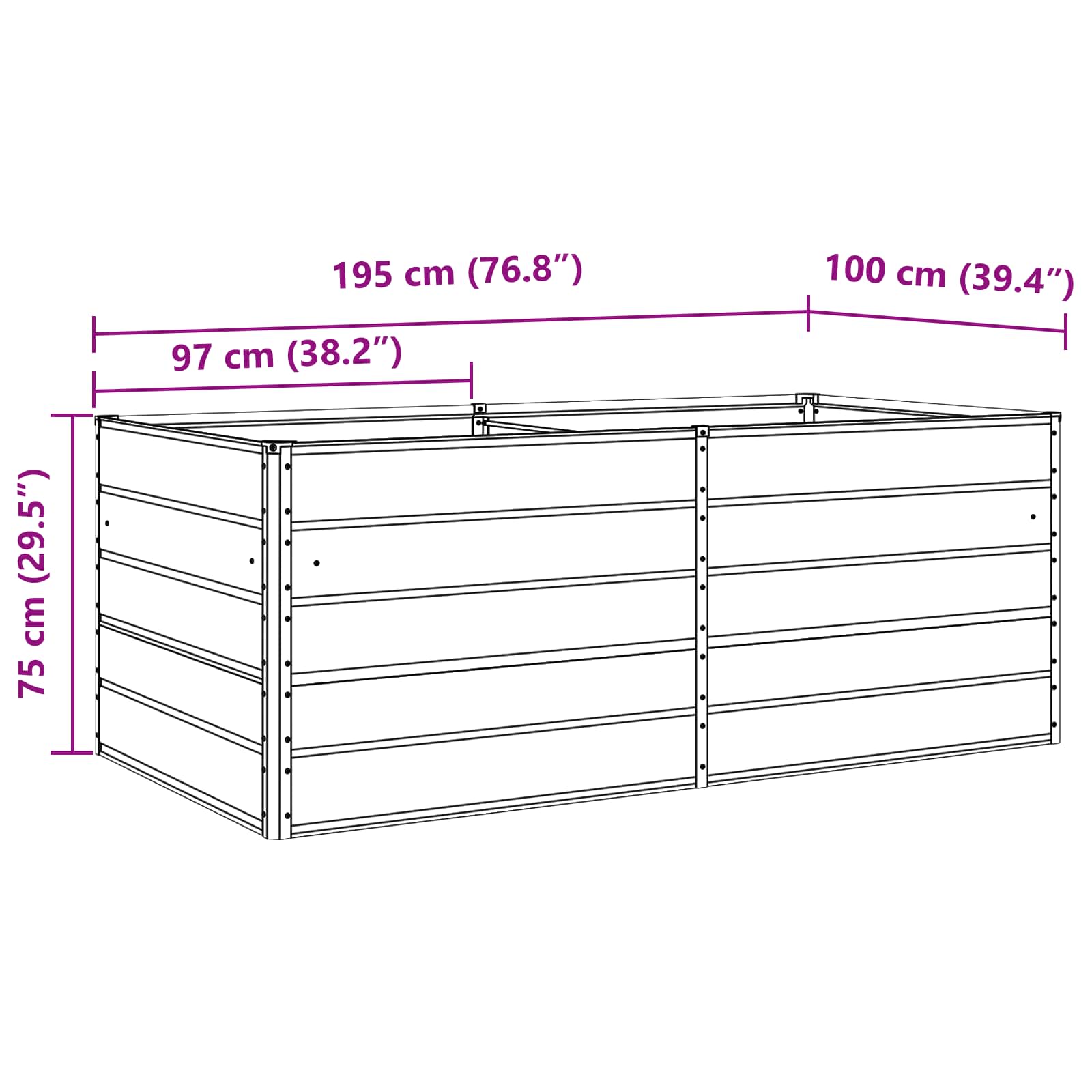 Ta barvni kovinski cvetličnik doda sodoben pridih Vašemu vrtu ali terasi. Njegova eleganca in industrijski stil sta prava izbira za vsak prosti prostor. Izdelan je iz pocinkanega jekla, kar mu daje trajnost in stilski videz, ki ga bo preizkus časa. Cvetličnik nudi dovolj prostora za rastline, kar omogoča ustvarjalnost na prostem. Ne glede na to ali ga postavite na teraso ali v vrt, bo dvignil vzdušje in povezal naravo s sodobnim dizajnom. Kot nalašč za vse, ki cenijo tako lepoto kot funkcionalnost. Premium konstrukcija iz jekla Poskrbi za dolgo življenjsko dobo in odpornost proti vremenskim vplivom. Pocinkano jeklo ni le lepo videti, ampak tudi trpežno, kar pomeni, da bo zdržalo različne vremenske razmere in vam služilo dolga leta. Scenska prisotnost Nudi širok prostor za vaše rastline, kar je primerno za okrasne trave ali živahne cvetove. Cvetličnik omogoča kreativno krajinsko zasnovo in prilagodljivost pri postavljanju rastlin, kar dopolnjuje vaš zunanjim stil. Enostavna sestava Potrebuje samo osnovna orodja, kot je izvijač. Zasnovan je z mislijo na enostavno montažo, kar vam omogoča hitro in preprosto namestitev. Dve osebi bosta poskrbeli za stabilnost in pravilno prileganje, kar zagotavlja odličen izdelek za vsak vrt ali teraso. Izključna zunanja uporaba Ta cvetličnik je primeren za zunanja okolja in deluje kot osrednji kos na terasah ali v odprtih vrtovih. Njegova prilagodljivost je prava izbira za tiste, ki uživajo v druženju na prostem ali potrebujete trenutek sprostitve med naravo. Enostavno vzdrževanje Redno obrišite z milom in vodo, da preprečite nabiranje umazanije. Material ni potreben pogosto osveževanje, kar pomeni, da je nizko vzdrževen kos vašega zunanjega pohištva. Enostavna navodila za oskrbo zagotavljajo dolgo živost njegove lepote.