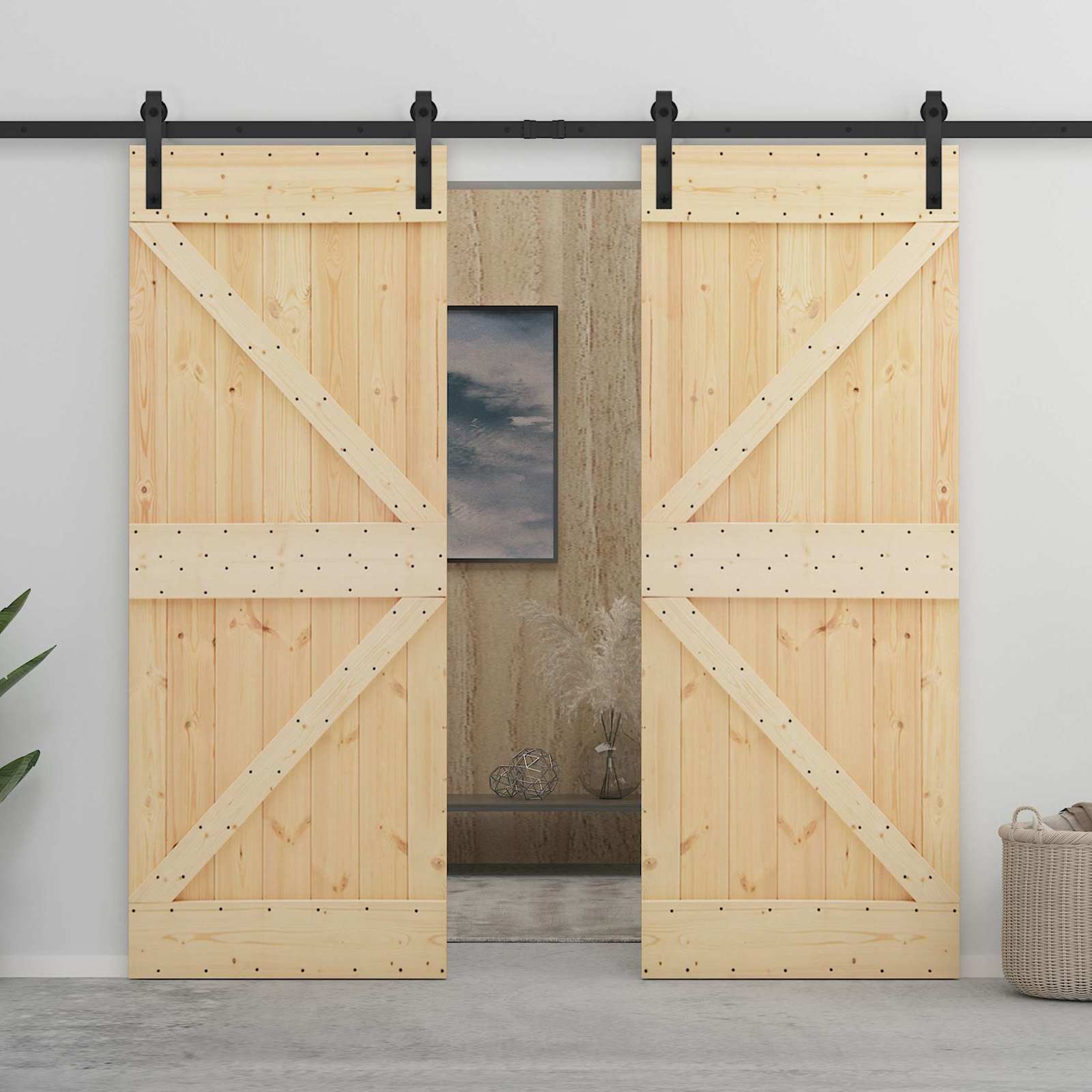 Popestrite svoj dom z našimi modernimi drsnimi vrati, ki združujejo uporabnost in lepoto. Njihov kompakten mehanizem je super za optimizacijo prostora in omogoča gladek prehod med prostori. Struktura iz borovega lesa : Ta drsna vrata so narejena iz trdnega borovega lesa, ki daje naraven videz, se lepo poda k različnim stilom in je močen ter stabilen material. Prašno lakirane jeklne komponente : Drsna tirnica je iz vzdržljivega prašno lakiranega jekla, kar daje moderen videz in ščiti pred obrabo. Drsni vrhnji mehanizem : Zgornja tirnica vrata se brez težav premika na stran, kar omogoča enostaven dostop in gladko delovanje brez zavzetja dodatnega prostora. Prostor varčna zasnova : Ta vrata so zasnovana tako, da optimizirajo prostor, saj vključujejo minimalistično zasnovo, kar je super za manjše prostore in urbana okolja. Nasveti za vzdrževanje : Ta vrata je enostavno vzdrževati – obrišite jih z vlažno krpo in se izogibajte ostrim kemikalijam. Redna skrb bo poskrbela za gladko delovanje tirnice.