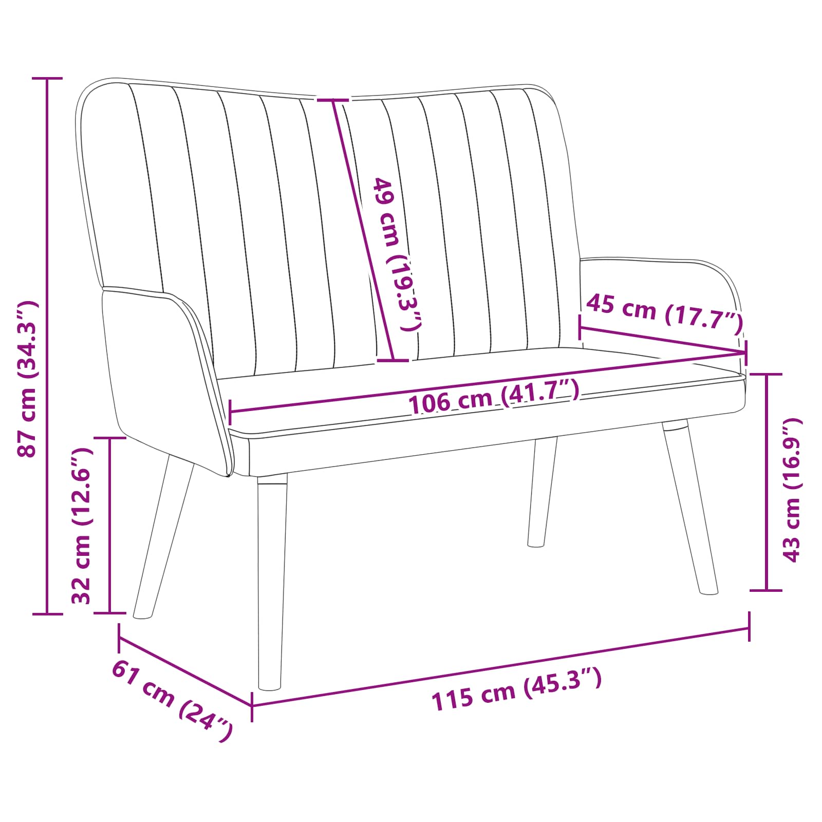 Ta dvosedežna garnitura, ki ji pravimo tudi Relax dvosedežna garnitura, izboljša sodobne notranje prostore s svojim elegantnim izgledom in funkcionalnostjo. Idealna je za dnevne sobe in spalnice, saj nudi mehko in zračno žametno tkanino, ki vam omogoča prijetna druženja in mirne večere. Njena gladka tekstura in svetlo sivi odtenki ji dodajo sodoben pridih, kar jo postavi v ospredje, saj brez truda dopolnjuje vsak slog. Žametni material: Oblazinjena v luksuzni žamet, ta dvosedežna garnitura zagotavlja mehko in bogato izkušnjo, ki povečuje udobje. Dihajoča tkanina omogoča dober pretok zraka, kar zmanjšuje toploto med daljšim sedenjem, kar jo dela odlična izbira za vsako sezono in notranje prostore. Trdi komponenti: Z robustnim kovinskim okvirom v elegantnem mat zaključku, ta garnitura združuje moč in estetiko. Penasti naslon za hrbet in oblazinjeni nasloni za roke nudijo izjemno podporo ter udobje, tudi med daljšim sedenjem, bodisi med sproščanjem bodisi ob sprejemanju gostov. Sodobna privlačnost: Z gladko teksturo in svetlo sivo barvo garnitura izžareva moderno sofisticiranost. Njena elegantna zasnova jo naredi prilagodljivo za različne dekorativne teme, saj nudi stilsko rešitev za sedenje v urbanih stanovanjih in sodobnih domovih. Praktična uporaba: Z dimenzijami 115 x 61 x 87 cm je ta dvosedežna garnitura kompaktna, a hkrati prostorna, kar ponuja dovolj sedenja brez prekomernega zavzemanja prostora. Idealna je za intimne prostore, saj spodbuja sproščanje in zadostuje potrebam vašega življenjskega sloga. Enostavno vzdrževanje: Z minimalnimi zahtevami po vzdrževanju, se garnitura enostavno čisti z rednim obrisom s suho krpo, da ostane videti sveža. Njena trdna konstrukcija zagotavlja dolgotrajnost, kar omogoča, da ostane stalna oprema v vašem domu še vrsto let.