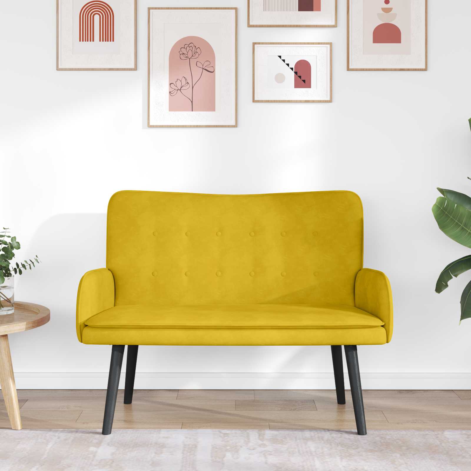 Ta dvosed prinaša sodobno eleganco in udobno sedenje v vsak prostor. Zasnovan za raznolike notranje prostore, ponuja eleganten profil, ki se prilega tako modernim kot tradicionalnim ambientom. Vsestran žametni material Garnitura je pokrita z luksuznim žametom, ki nudi mehkobo in doda ščepec sofisticiranosti tvoji dnevni sobi ali spalnici. Žamet izstopa s svojim videzom in mehkobo, kar te vedno znova vabi k sprostitvi ob usedanju. Trdna kovinska konstrukcija Skrit, a zelo pomemben del zasnove, ta kovinska podlaga nudi podporo in stabilnost, kar zagotavlja dolgo življenjsko dobo. Ta izbira poskrbi, da je garnitura odporna na vsakodnevno uporabo, kar je super za različne prostore. Sodobni paneli za naslone roke Paneli nudijo aktualen pridih, obenem pa nudijo udoben naslon za roke. Brezskrbno se zlijejo s splošnim stilom garniture, kar jo naredi privlačen osrednji kos v vsakem prostoru. Stožčaste lesene noge Eleganten stožčast dizajn poskrbi za stabilnost, a dodatno izboljšuje stil garniture. Te sodobne noge kontrastirajo z mehkobo sedenja za popolno mešanico stila in funkcionalnosti. Enostavno vzdrževanje Ohraniti garnituro čisto je enostavno s priporočeno metodo čiščenja: samo obrišite jo z suho krpo. Enostavno vzdrževanje zagotavlja, da ostane žamet v odličnem stanju skozi čas.