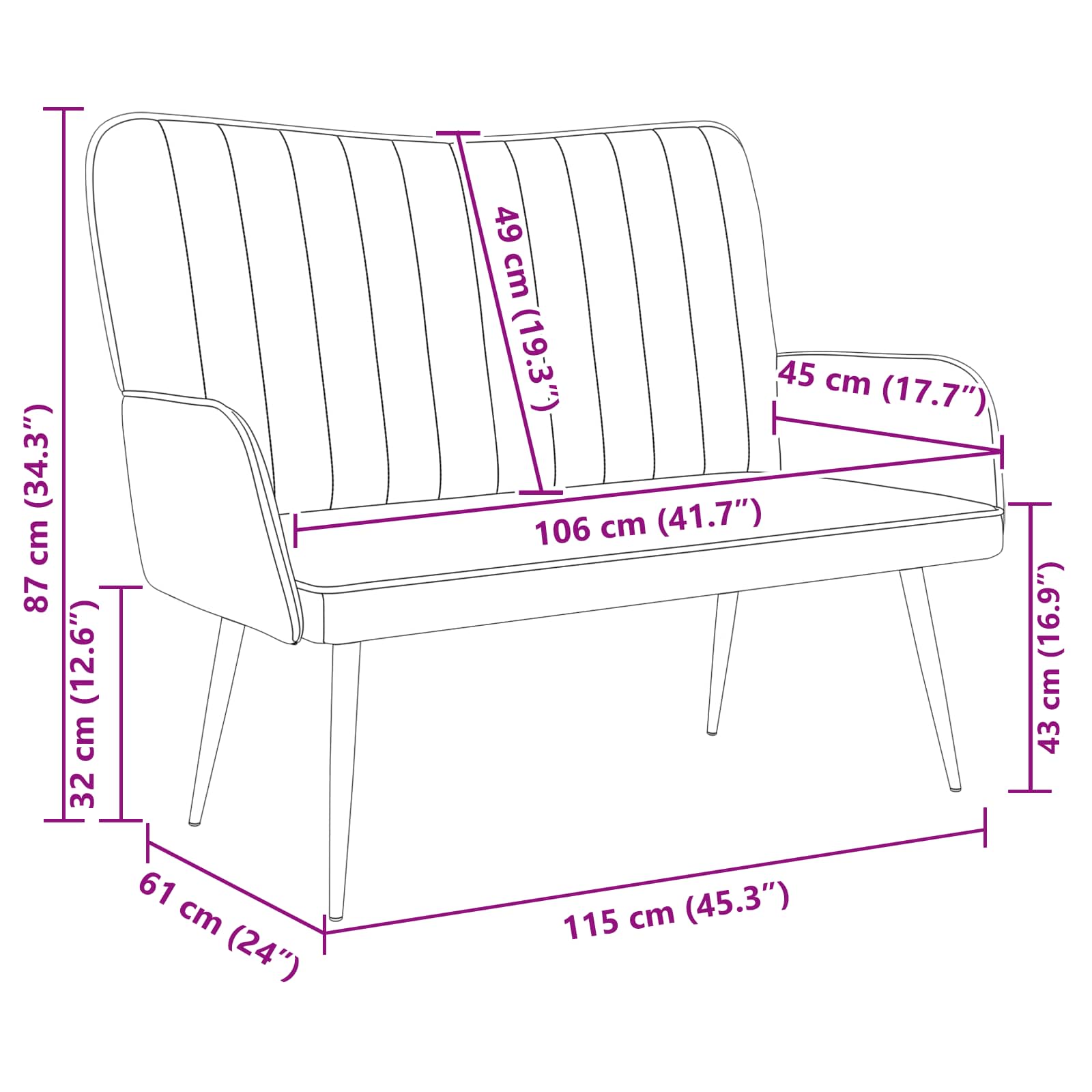 Ta dvosedežna garnitura, ki ji pravimo tudi Relax dvosedežna garnitura, izboljša sodobne notranje prostore s svojim elegantnim izgledom in funkcionalnostjo. Idealna je za dnevne sobe in spalnice, saj nudi mehko in zračno žametno tkanino, ki vam omogoča prijetna druženja in mirne večere. Njena gladka tekstura in svetlo sivi odtenki ji dodajo sodoben pridih, kar jo postavi v ospredje, saj brez truda dopolnjuje vsak slog. Žametni material: Oblazinjena v luksuzni žamet, ta dvosedežna garnitura zagotavlja mehko in bogato izkušnjo, ki povečuje udobje. Dihajoča tkanina omogoča dober pretok zraka, kar zmanjšuje toploto med daljšim sedenjem, kar jo dela odlična izbira za vsako sezono in notranje prostore. Trdi komponenti: Z robustnim kovinskim okvirom v elegantnem mat zaključku, ta garnitura združuje moč in estetiko. Penasti naslon za hrbet in oblazinjeni nasloni za roke nudijo izjemno podporo ter udobje, tudi med daljšim sedenjem, bodisi med sproščanjem bodisi ob sprejemanju gostov. Sodobna privlačnost: Z gladko teksturo in svetlo sivo barvo garnitura izžareva moderno sofisticiranost. Njena elegantna zasnova jo naredi prilagodljivo za različne dekorativne teme, saj nudi stilsko rešitev za sedenje v urbanih stanovanjih in sodobnih domovih. Praktična uporaba: Z dimenzijami 115 x 61 x 87 cm je ta dvosedežna garnitura kompaktna, a hkrati prostorna, kar ponuja dovolj sedenja brez prekomernega zavzemanja prostora. Idealna je za intimne prostore, saj spodbuja sproščanje in zadostuje potrebam vašega življenjskega sloga. Enostavno vzdrževanje: Z minimalnimi zahtevami po vzdrževanju, se garnitura enostavno čisti z rednim obrisom s suho krpo, da ostane videti sveža. Njena trdna konstrukcija zagotavlja dolgotrajnost, kar omogoča, da ostane stalna oprema v vašem domu še vrsto let.