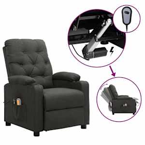 Namestite se in uživajte na tem izjemno udobnem električnem masažnem stolu! Električna funkcija nagibanja: Ta naslanjač je opremljen z električnim motorjem za lažje vstajanje. Ima 3 položaje za nagibanje, zato lahko naslonjalo za hrbet in naslonjalo za noge s priloženim ročnim upravljalnikom z dvema gumboma preprosto nastavite glede na svoje udobje.Funkcija vibriranja: 6 masažnih točk vam omogoča, da izkusite bolje usmerjeno masažo. Poleg tega vam priloženi ročni upravljalnik omogoča izbiro različnih programov masaže. Masažno funkcijo napaja USB priključek, vendar certificiran 5V vir napajanja USB ni priložen.Udobno sedenje: Sedež, naslonjalo za hrbet in široki nasloni za roke, prevlečeni s tkanino, zagotavljajo prijeten in topel občutek, zato se med sedenjem počutite prijetno. Preprosta in čista tkanina je tudi zračna in trpežna.Trden in stabilen okvir: Okvir iz lesa in kovine zagotavlja trdno strukturo in stabilnost. Ta naslanjač je udoben in trpežen.