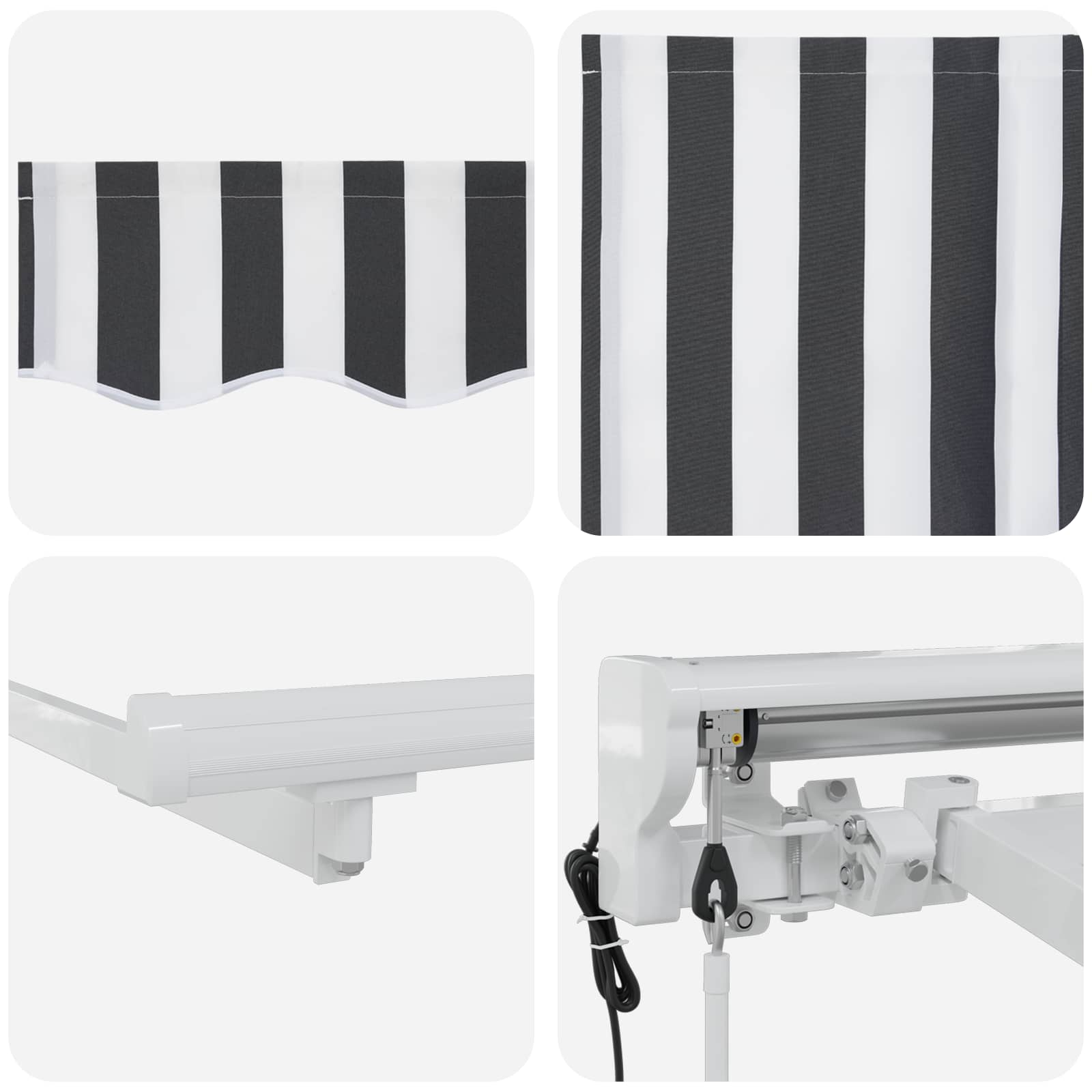 Ta električna zložljiva tende nudi stilsko in funkcionalno zaščito za vaše zunanje prostore. Z več kot dovolj funkcionalnosti in modernim minimalizmom se lepo prilega vsakemu vrtu ali terasi. Njena pravokotna oblika omogoča izboljšanje videza in funkcionalnosti vaših zunanjih prostorov, idealna je za druženja in sprostitvene trenutke. Trajni materiali: Tenda je izdelana iz aluminija in poliestra, kar zagotavlja odpornost in privlačnost na prostem. Aluminij poskrbi za stabilnost in vremensko odpornost, poliester pa za vrhunsko UV zaščito. Ta kombinacija zagotavlja, da bo tenda delovala skozi vse letne čase. Napredne komponente: Zanesljiv jekleni valj in električni zložljivi sistemi omogočajo prilagodljivo senco. Z daljinskim upravljalnikom je mogoče senco enostavno prilagoditi brez nagajanja in poskrbeti za udobje v različnih trenutkih. Dizajn odličnosti: Polkapsulni dizajn prinaša oblikovne in funkcionalne prednosti. Ne le, da ščiti tkanino, ko je zložena, temveč ji daje tudi sodoben izgled, ki se lepo ujema z zunanjim dekorjem. Lastnikom tako nudi praktično senco in estetsko vrednost. Funkcionalne značilnosti: Z ročnim navijalom ali električnim daljincem je tenda zelo preprosta za uporabo. Lastniki lahko enostavno nadzorujejo senco in tako nudijo udobje v različnih vremenskih razmerah. Enostavno vzdrževanje: Sledite navodilom za namestitev ob uporabi potrebščin kot so izvijač, vrtalnik in klešče. Čistite tendeno redno, da ohranite njen izgled in zanesljivost.