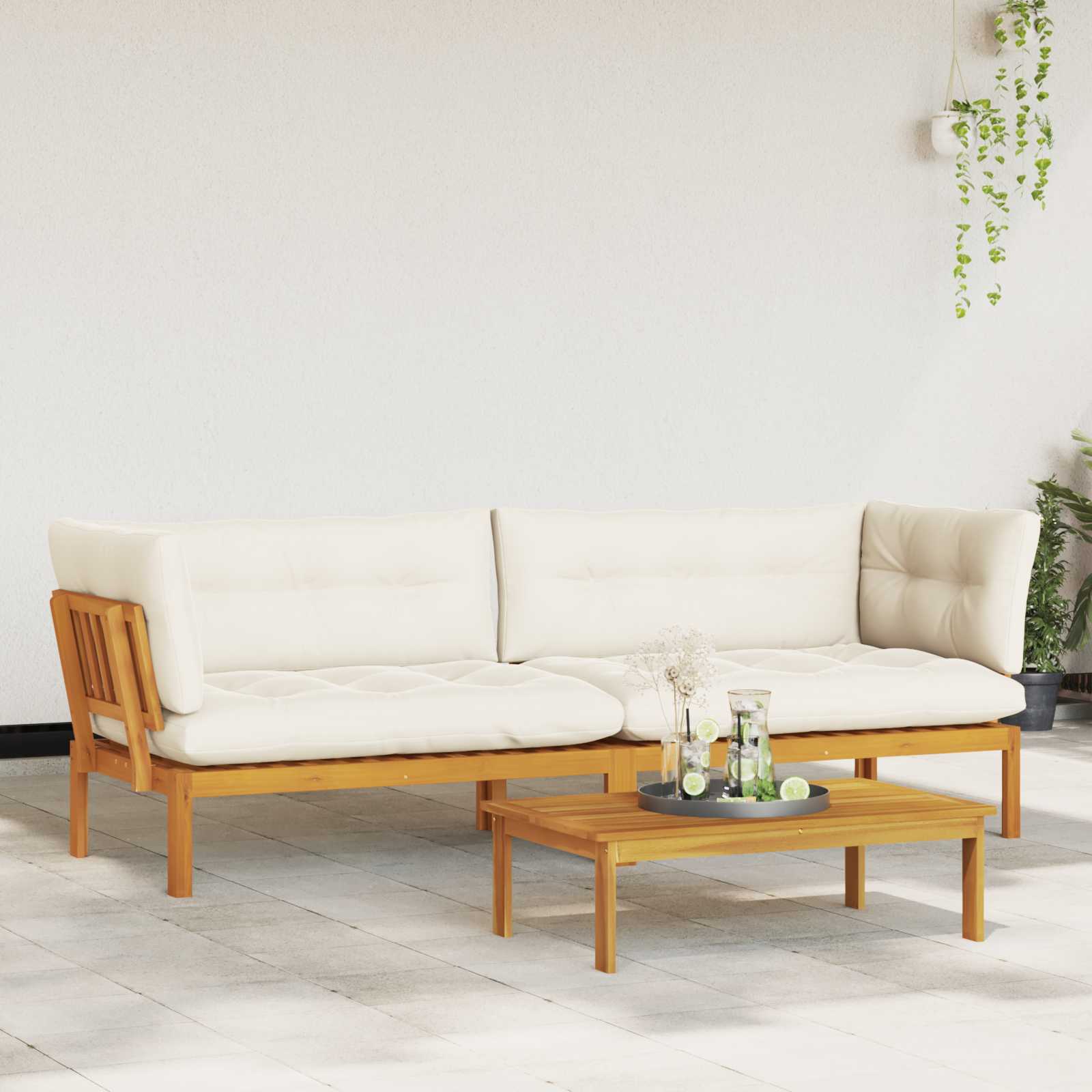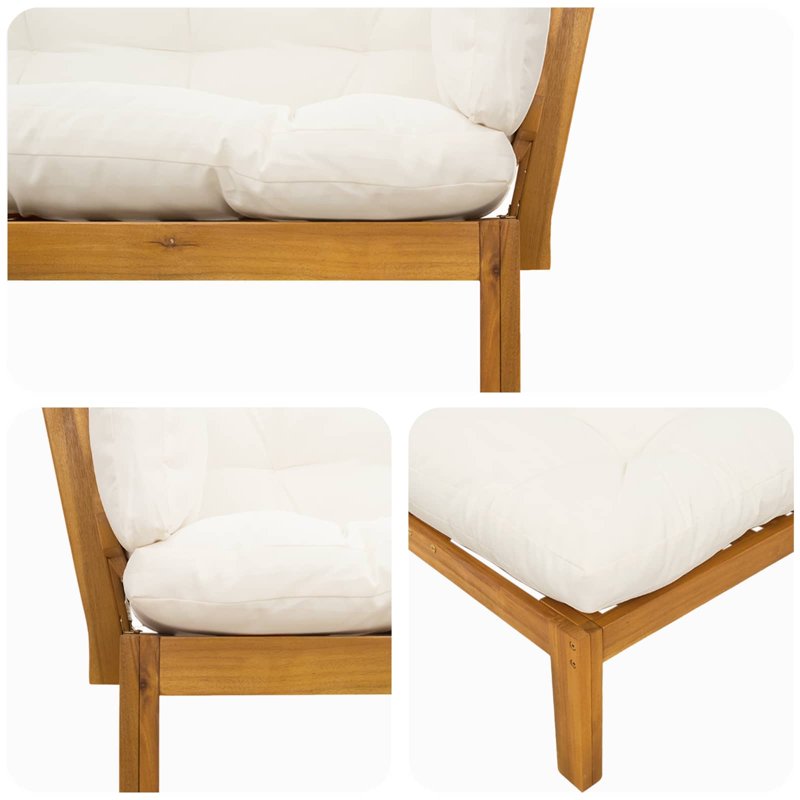 Ta rustikalni vrtni kavč iz palet je oblikovan za udobno sedenje na prostem, z naravnim videzom, ki pritegne pogled. Narejen iz trdnega akacijevega lesa, okvir pokaže tople odtenke in značilne vzorce lesa, ki se odlično ujemajo z vrtnarskimi, patio ali terasnimi prostori. Kotna zasnova ustvarja sproščen prostor za druženje, medtem ko priložena nizka miza ponuja priročno mesto za pijače ali manjše predmete. Blazine iz penastega materiala in rahlo nagnjeno naslonjalo zagotavljajo udobno sedenje za vsakodnevno sprostitev zunaj. Trdna konstrukcija iz akacijevega lesa Okvir, naslonjalo, noge in površina so izdelani iz trdnega akacijevega lesa, znanega po svoji naravni odpornosti in značilni teksturi. Ta les daje prijeten, vroč videz in zagotavlja stabilno strukturo za zunanjo uporabo. Fiksna mrežasta zasnova Zasnova z nefleksibilnimi letvami nudi trdno podporo za udobno sedenje in je primerna za redno uporabo na prostem. Vremensko odporne lastnosti Kavč je zasnovan za zunanje okolje in pomaga ohraniti svoj videz ter strukturo skozi vse letne čase. Primerno je za rabo v sončnih ali deževnih dneh, kar omogoča dolgoročno uporabo na prostem. Kotna lounge postavitev s priloženo mizo Njegova kotna zasnova optimizira zunanji prostor in hkrati ustvari sproščen lounge prostor. Nizka miza je vključena, da omogoči priročno površino za pijače, prigrizke ali dekoracijo. Enostavna vzdrževanje Le obrišite kavč z vlažno krpo, da ohranite njegov videz pri vsakodnevni rabi. Minimalna potreba po vzdrževanju omogoča, da bo idealen za redno uporabo na prostem.