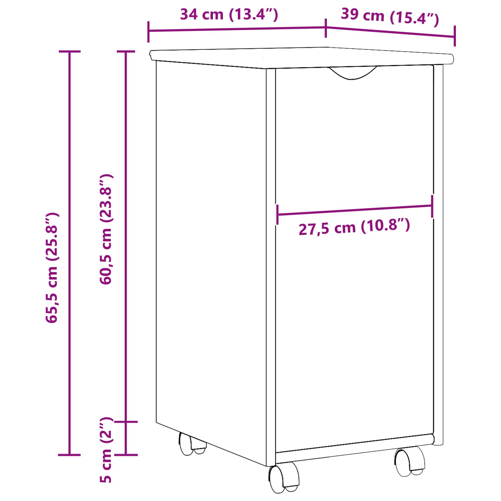 - 1 x Valjani kabinet: 34 x 39 x 60,5 cm (Š x G x V)