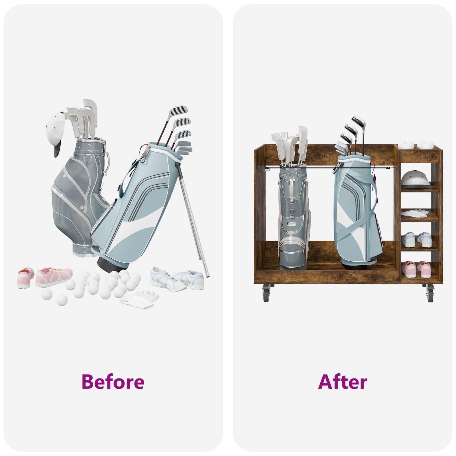 Ta omarica za golf je odlična izbira, če iščete prostorno shranjevanje z modernim stilom. Zasnovana je za notranjo rabo, doda pridih elegance vsaki garaži ali sobi. Z enostavno pravokotno obliko in gladko površino prinaša nekakšno poenostavljeno estetiko. Odlično shranjuje vaše osnovne golf potrebščine in ohranja urejenost, saj povezuje stil in funkcionalnost. Materiali: Natančno izdelana iz lesa, ta omara je močna in elegantna rešitev za shranjevanje. Naravni les prinaša toplino in trdnost v vaš notranji prostor, material je trpežen in dolgotrajen ter izboljšuje videz enote. Vključeni deli: Prostostoječe police iz lesa zagotavljajo zanesljivo podporo vašim stvarem. Kovinska hrbtna stran daje končni, estetski pridih, ki dopolnjuje prostor. Praškasto prevlečen kovinski okvir povečuje odpornost omare in zagotavlja trdnost. Značilnosti: Z oblikovanjem številnih shranjevalnih možnosti je idealna za organizacijo golf dodatkov in še več. Neprosojna zasnova skrbno skriva vsebino, njen moden stil pa se prilega različnim domačim dekorjem. Je praktična pomoč za ohranjanje reda in dodaja kanček elegance. Priporočene uporabe: Odlična je za garaže ali notranje prostore, kjer potrebujete več prostora za shranjevanje. Ne glede na to, ali gre za golf opremo ali druge predmete, se zlahka prilega v prostore s sodobnim občutkom. Njena uporabnost presega šport in pokriva številne potrebe po shranjevanju. Osnovna nega: Za ohranjanje lepote redno brišite površino z mehko krpo. Izogibajte se ostrim kemikalijam, da les ohrani svoj naravni sijaj. Minimalno vzdrževanje zagotavlja stiliziran videz omare skozi čas.