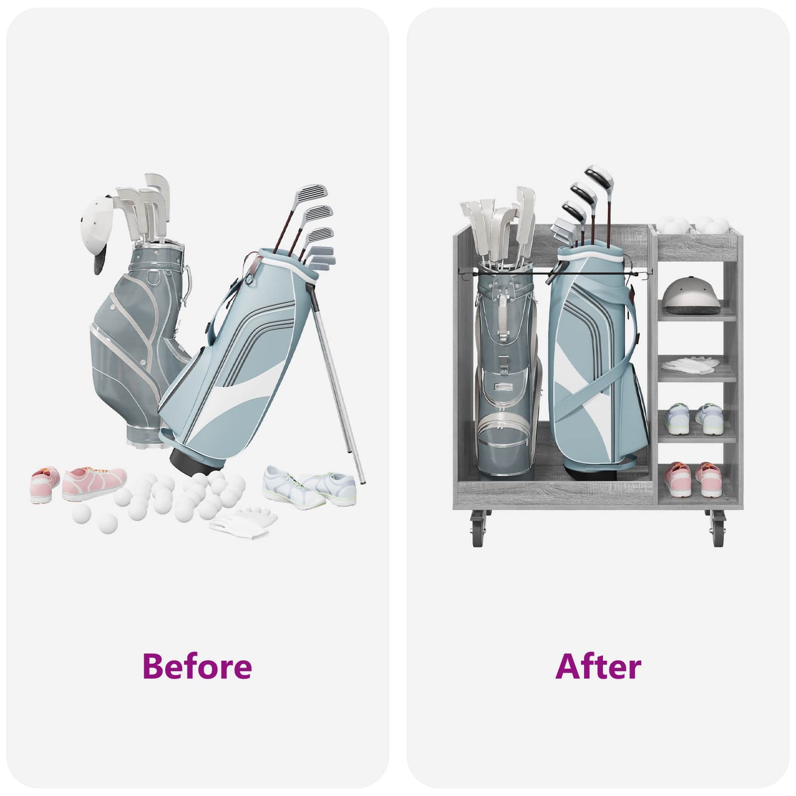 Ta omarica za golf je odlična izbira, če iščete prostorno shranjevanje z modernim stilom. Zasnovana je za notranjo rabo, doda pridih elegance vsaki garaži ali sobi. Z enostavno pravokotno obliko in gladko površino prinaša nekakšno poenostavljeno estetiko. Odlično shranjuje vaše osnovne golf potrebščine in ohranja urejenost, saj povezuje stil in funkcionalnost. Materiali: Natančno izdelana iz lesa, ta omara je močna in elegantna rešitev za shranjevanje. Naravni les prinaša toplino in trdnost v vaš notranji prostor, material je trpežen in dolgotrajen ter izboljšuje videz enote. Vključeni deli: Prostostoječe police iz lesa zagotavljajo zanesljivo podporo vašim stvarem. Kovinska hrbtna stran daje končni, estetski pridih, ki dopolnjuje prostor. Praškasto prevlečen kovinski okvir povečuje odpornost omare in zagotavlja trdnost. Značilnosti: Z oblikovanjem številnih shranjevalnih možnosti je idealna za organizacijo golf dodatkov in še več. Neprosojna zasnova skrbno skriva vsebino, njen moden stil pa se prilega različnim domačim dekorjem. Je praktična pomoč za ohranjanje reda in dodaja kanček elegance. Priporočene uporabe: Odlična je za garaže ali notranje prostore, kjer potrebujete več prostora za shranjevanje. Ne glede na to, ali gre za golf opremo ali druge predmete, se zlahka prilega v prostore s sodobnim občutkom. Njena uporabnost presega šport in pokriva številne potrebe po shranjevanju. Osnovna nega: Za ohranjanje lepote redno brišite površino z mehko krpo. Izogibajte se ostrim kemikalijam, da les ohrani svoj naravni sijaj. Minimalno vzdrževanje zagotavlja stiliziran videz omare skozi čas.