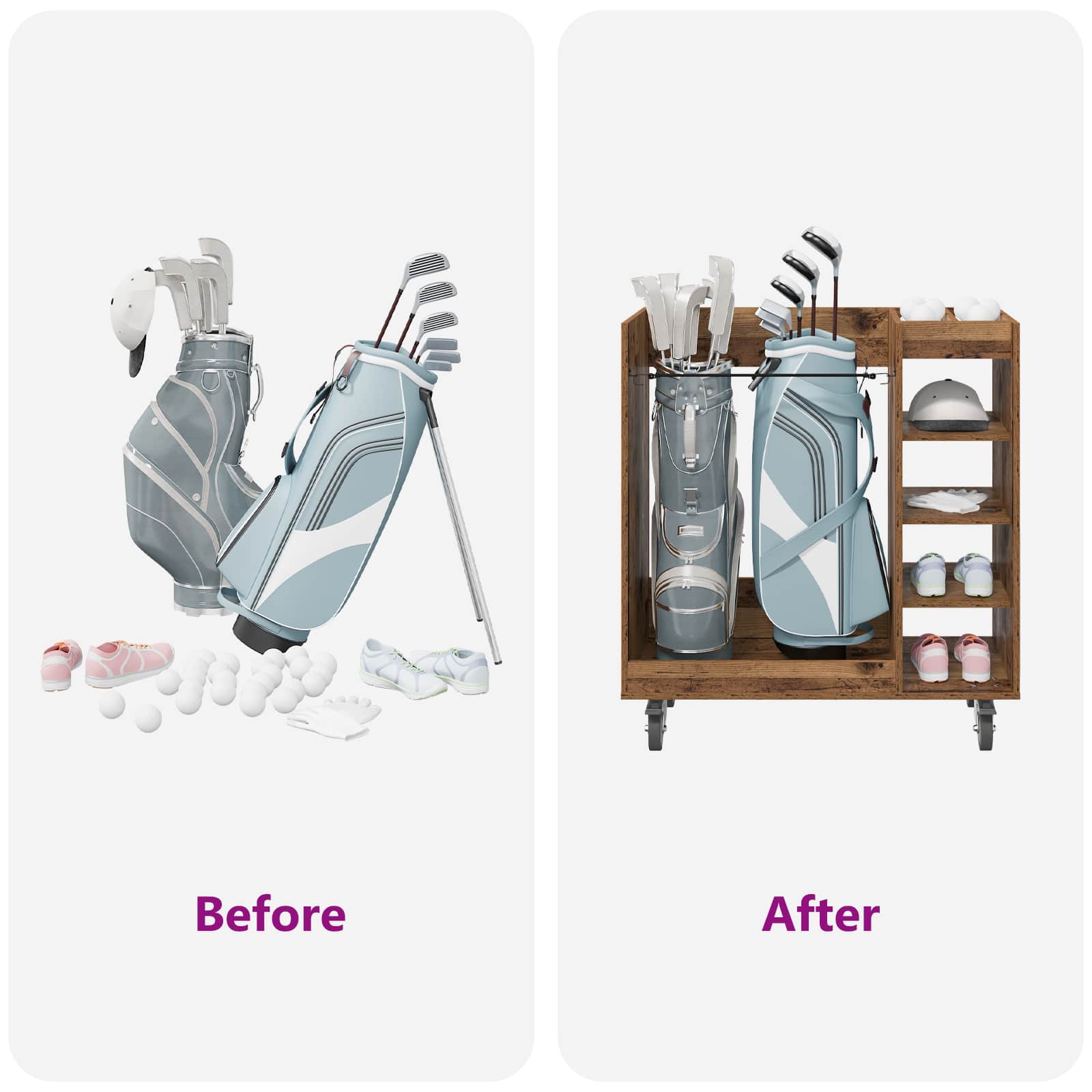 Ta omarica za golf je odlična izbira, če iščete prostorno shranjevanje z modernim stilom. Zasnovana je za notranjo rabo, doda pridih elegance vsaki garaži ali sobi. Z enostavno pravokotno obliko in gladko površino prinaša nekakšno poenostavljeno estetiko. Odlično shranjuje vaše osnovne golf potrebščine in ohranja urejenost, saj povezuje stil in funkcionalnost. Materiali: Natančno izdelana iz lesa, ta omara je močna in elegantna rešitev za shranjevanje. Naravni les prinaša toplino in trdnost v vaš notranji prostor, material je trpežen in dolgotrajen ter izboljšuje videz enote. Vključeni deli: Prostostoječe police iz lesa zagotavljajo zanesljivo podporo vašim stvarem. Kovinska hrbtna stran daje končni, estetski pridih, ki dopolnjuje prostor. Praškasto prevlečen kovinski okvir povečuje odpornost omare in zagotavlja trdnost. Značilnosti: Z oblikovanjem številnih shranjevalnih možnosti je idealna za organizacijo golf dodatkov in še več. Neprosojna zasnova skrbno skriva vsebino, njen moden stil pa se prilega različnim domačim dekorjem. Je praktična pomoč za ohranjanje reda in dodaja kanček elegance. Priporočene uporabe: Odlična je za garaže ali notranje prostore, kjer potrebujete več prostora za shranjevanje. Ne glede na to, ali gre za golf opremo ali druge predmete, se zlahka prilega v prostore s sodobnim občutkom. Njena uporabnost presega šport in pokriva številne potrebe po shranjevanju. Osnovna nega: Za ohranjanje lepote redno brišite površino z mehko krpo. Izogibajte se ostrim kemikalijam, da les ohrani svoj naravni sijaj. Minimalno vzdrževanje zagotavlja stiliziran videz omare skozi čas.