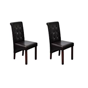 Ta komplet 4 udobnih in velikih jedilnih stolov antične oblike ima ergonomsko oblikovane sedeže in naslonjala. Noge so izdelane iz trdnega lesa v lakirani temno rjavi barvi, vogali pa so zaobljeni za dodatno varnost. Vzdrževanje in čiščenje stolov je preprosto. Sedeži in naslonjala teh jedilnih stolov so oblečena v trpežno sintetično usnje.