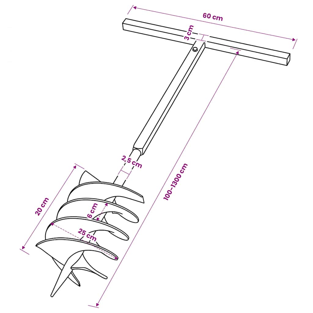 Ste vedno utrujeni od kopanja lukenj z rokami, ko sadite? Naš sveder za zemljo z ročajem vam bo pomagala vrtati luknje brez ustavljanja in pri tem ne boste umazali vaših rok! Poleg kopanje lukenj, lahko sveder uporabljate tudi za prezračevanje komposta, mešanje zemlje in gnojila, ali pa naredite luknje za gnojilo. Narejen je iz super močnega jekla, zato je sveder zelo močn in uporaben za različne namene. Poleg tega je opremljen z ročajem, ki ponuja dodatno udobje. Ta podaljšana palica se uporablja kot podaljšek vrtalnika za zemljo. Z njim boste lahko dosegli dolžino, ki ustreza vašim specifičnim namenom. Palice lahko preprosto sestavite s priloženimi vijaki. Dobava vključuje vrtalnik za zemljo, ročaj, 12 kosov cevi za podaljšanje in nekaj vijakov.