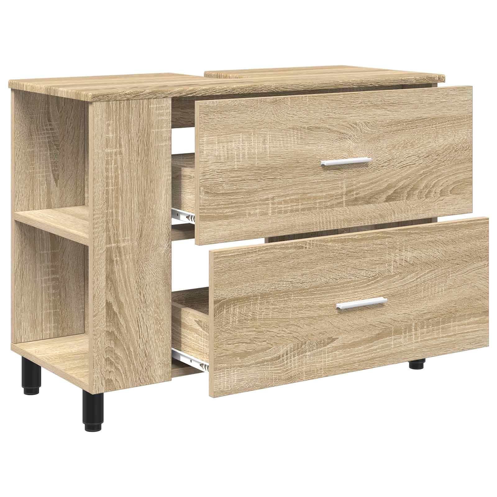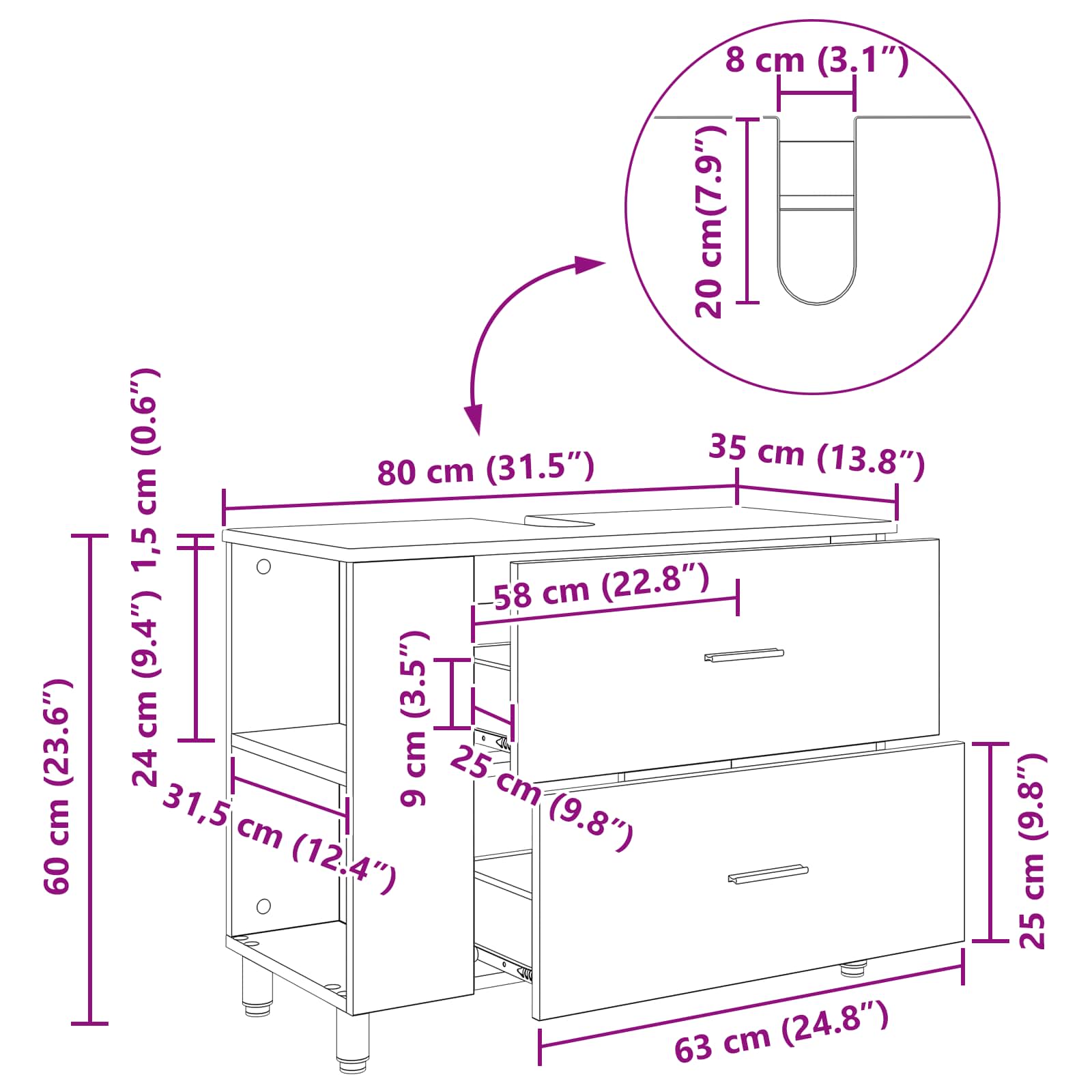 Ta moderni umivalnik prinaša ne samo slog, ampak tudi funkcionalnost. Njena dizajnerska zasnova se prilega različnim kopalniškim dekorjem in je primerna za majhne in večje kopalnice. Omara se pritrditev pod umivalnikom odlično zlije z okolico, kar maksimira prostor brez kompromisov na estetiki. Trden inženirski les: Omara je narejena iz inženirskega lesa, znanega po odpornosti in trajnosti, kar zagotavlja dolgo življenjsko dobo tudi v vlažnih razmerah. Čiste linije in gladka površina podpirata sodoben videz, hkrati pa nudita trdno oporo celotni strukturi. Nastavljive kovinske noge: Ta omara ima nastavljive kovinske noge, kar zagotavlja stabilnost tudi na neravnih tleh. Te noge se prilagodijo potrebam vaše kopalnice in olajšajo varno postavitev ter povečajo prilagodljivost omare. Večnamenska zasnova vrat: Z načrtom vrat, ta omara omogoča enostavno namestitev pod vsak standardni umivalnik. Fleksibilnost postavitve vrat omogoča prilagoditev vašemu tlorisu kopalnice, kar ponuja optimalno shranjevanje in dostopnost. Velik prostor za shranjevanje: Opremljena z notranjim predelkom, ta omara ponuja obilno shranjevanje za vaše toaletne potrebščine in čistila. Organizacija osnovnih potrebščin je enostavna, saj je dovolj prostora za dodatne brisače, čistila ali osebna higienska sredstva, ki so skrbno shranjena. Os Care & vzdrževanje: Vzdrževanje je enostavno, površino obrišite z vlažno krpo, da ostane brez madežev in ohrani svež izgled. Izogibanje ostrim kemikalijam pripomore k njej dolgi življenjski dobi in vsakodnevno vzdrževanje naredi manj mučno in bolj učinkovito.