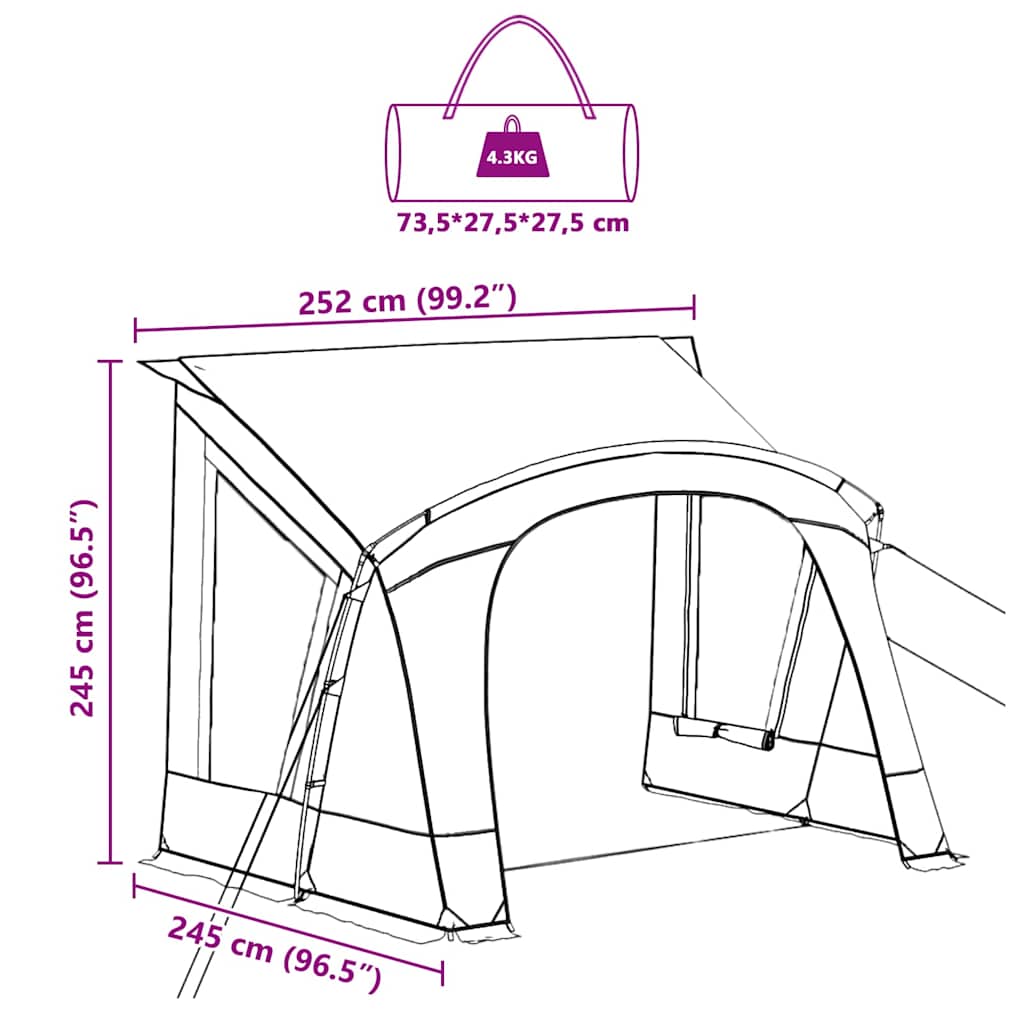 Ta moderni karavanski šotor je zasnovan za tvoje udobje – dovolj prostora za skupne aktivnosti, hkrati pa enostaven za postavitev in shranjevanje. Gladka taffeta tkanina in sodoben dizajn omogočata brezskrbno prileganje vrtnim in terasnim nastavitvam, super je za poletne avanture in kampiranje. Materiali: Ta šotor je izdelan iz gladke taffeta tkanine, kar zagotavlja trdnost in odpornost na vreme. Je vodoodporen in UV-odporen, kar te zaščiti pred nepričakovanimi poletnimi vremenskimi razmerami, da ostaneš hladen in suh. Moderni slog doda eleganten pridih vsaki zunanji nastavitvi, kar izboljša tvoje kampirne izkušnje. Vključene komponente: Šotor vključuje vgrajeno cevko za kar enostavno povezovanje, kar omogoča hitro in stabilno nastavitev. Okna za prezračevanje in vgrajen kavelj za luč nudijo boljše kroženje zraka in osvetlitev, kar zagotavlja udoben prostor čez dan in noč. Značilnosti/funkcija/dizajn: Šotor se zahvaljujoč zložljivi strukturi kar enostavno zloži za shranjevanje. Hitro razstavljanje omogoča kompaktno shranjevanje, ko ga ne uporabljaš, njegova prenosnost pa pomeni, da ga lahko vzameš na vsako avanturo na prostem brez težav. Priporočene uporabe: Popoln je za vrt, teraso in kampiranje. Dandanes odprt dizajn šotora vabi sonce in vetriče. Primeren je za izlete, druženja ali sproščanje, kar zagotavlja kvaliteten čas s prijatelji in družino. Osnovna nega in vzdrževanje: Ohranite kakovost šotora z enostavnim čiščenjem s hladno vodo. Po vsaki uporabi ga hranite na hladnem in suhem mestu, da podaljšate njegovo življenjsko dobo. Ta preprosta oskrba zagotavlja, da je šotor zanesljivo zavetišče za vsako kampirno sezono, obdrži pa tudi svojo funkcionalnost in videz. Opozorilo Vse vire ognja in toplote hranite stran od te tkanine izdelka.