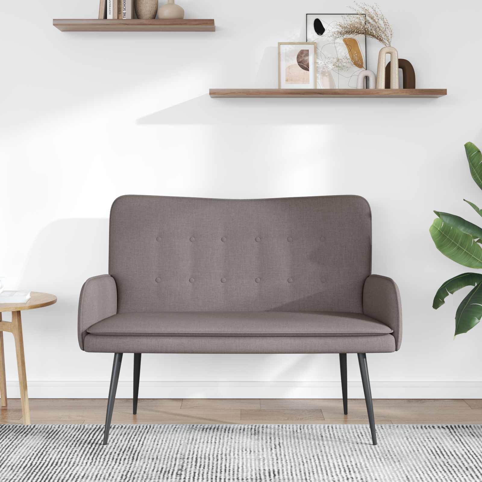Ta dvosedežna garnitura nudi udobno sedenje z vzdržljivimi materiali, poliester oblogo, peno za udobje in trdno konstrukcijo s prašno lakiranimi jeklenimi nogami. Trdna struktura: Zgrajena s kombinacijo kovine in inženirskega lesa, notranji okvir zagotavlja zanesljivo podporo in stabilnost za vsakodnevno uporabo. Udobno sedenje: Nasloni za roke ter oblazinjen sedež z visoko kakovostno peno nudijo podporo in udobje za sproščanje ali pogovore. Poliester podloge: Oblečena v poliestersko tkanino, kar zagotavlja vzdržljivo in enostavno rešitev za redno uporabo. Dvosedežna zasnova: Zasnovana za udobno namestitev dveh, odlična za majhne prostore. Široka uporaba: Preprost dizajn omogoča prilagoditev različnim notranjim stilom – idealna je za dnevne sobe, spalnice, pisarne in lounge prostore.