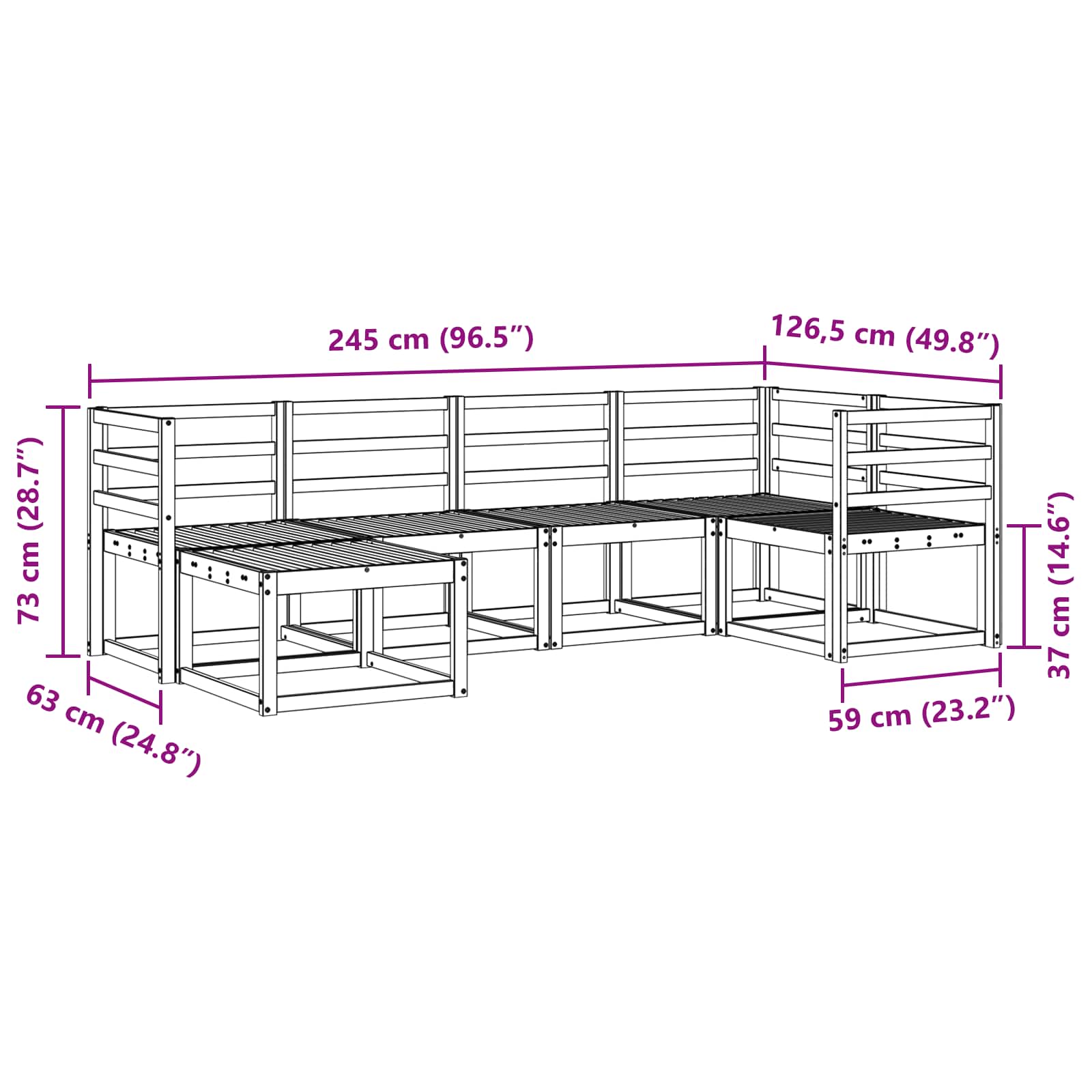 - 4 x Srednji kavč: 59 x 63 x 73 cm (D x Š x V)