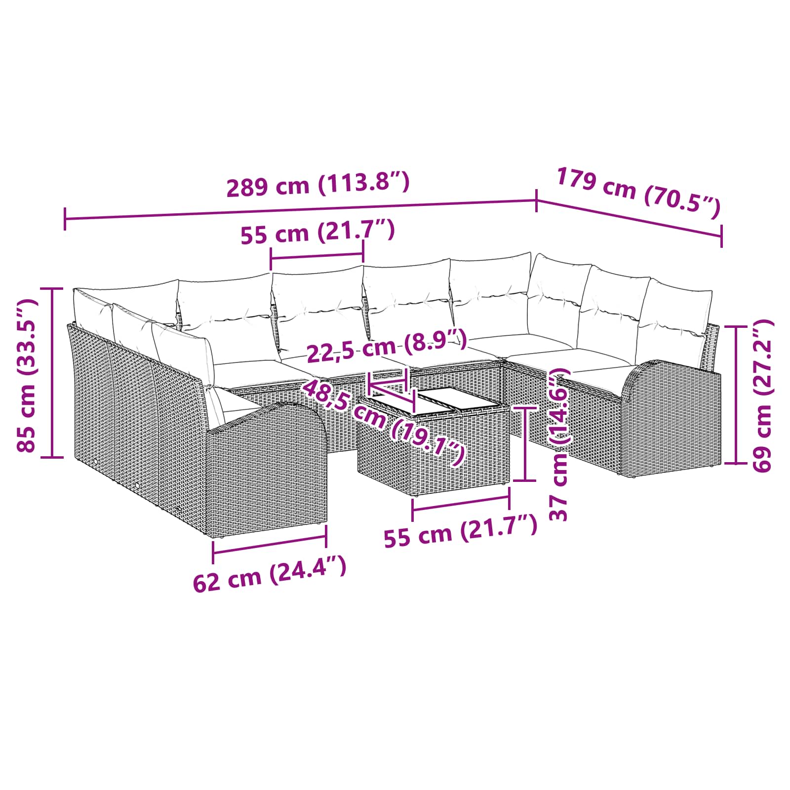 Ta moderna vrtnh garnitura bo spremenila tvoj zunanji prostor s svojimi čistimi linijami in sodobnim dizajnom. Idealna je za vrtnh in terasne nastavitve, modularni set ti omogoča ustvarjanje udobnih lounge razporeditev, ki se prilagajajo tvojemu razpoloženju in priložnosti. Narejen iz trpežnih materialov, ta set ponuja prijeten prostor za pomladne in poletne zborovanja ter udobno sprostitev. S svojo prepleteno teksturo in mat finišem prinaša eleganco in funkcionalnost v tvoj zunanji prostor ter lepo sprejema prijatelje in družino. Material poli ratan: Ta vrtnh sedežna garnitura je narejena iz poli ratana, ki združuje elegantnost in vzdržljivost. Poli ratan je odporen na UV žarke in vreme, idealen za zunanjo uporabo. Njegova prepletena tekstura dodaja stil, ki dopolnjuje vsak terasni ali vrtnh prostor ter izboljšuje zunanji ambient z elegantnim pridihom. Vključene komponente: Vključuje dva vogalna sedeža, pet sredinskih sedežev in dva naslonjača. Modularni set ponuja prilagodljivost, da ustreza tvojim potrebam. Udobne blazine s snemljivimi poliester prevlekami zagotavljajo dobro podporo in enostavno vzdrževanje. Prašno lakirana jeklena konstrukcija nudi stabilno podlago za dolge ure udobja na prostem. Modularna zasnova: Modularnost seta ti omogoča, da ga preoblikuješ, da ustreza različnim priložnostim. Ne glede na to, ali gre za družinsko srečanje ali tiho večerjo, njegova prilagodljivost podpira dinamičen življenjski slog. Končana naslonjala omogočajo osrednjo postavitev brez žrtvovanja estetike. Priporočena uporaba: Ta set je idealen za vrtove in terase in vabi k udobnemu poležavanju pod pomladnim in poletnim soncem. Njegov sodoben slog ustreza različnim zunanjim temam, kar ga dela primernega za vsak dogodek. Vzdrževanje: Da bo pohištvo dolgo zdržalo, ga pokrij, ko ga ne uporabljaš, in ga obriši z mehko krpo, da odstraniš prah. Priporočljivo je, da blazine shranjuješ na suhem, da ohraniš njihovo kakovost in podaljšaš njihovo življenjsko dobo. Tako bo tvoj set vedno videti odlično.