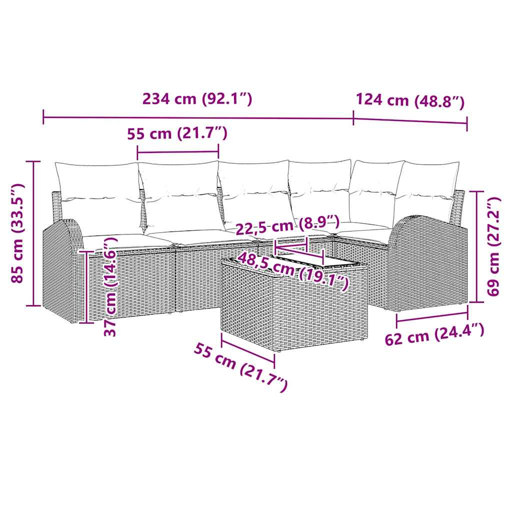 - 6 x blazina za hrbet: 55 x 55 cm (D׊)