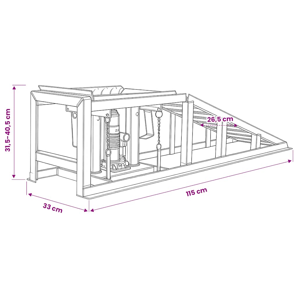 Ta par 2-tonskih klančin za popravilo avtomobilov je idealen za dvigovanje motornih vozil, kot so avtomobili in tovornjaki, v delavnicah in garažah. Klančine so zasnovane tako, da vam omogočajo enostaven dostop do spodnjega dela avtomobila in imajo največjo višino dviga 375 mm. Ko je dosežena želena delovna višina, lahko klančine zaskočite z varnostnim zatičem in vaš avtomobil bo v zelo stabilnem, dvignjenem položaju. Priložena hidravlična dvigalka nudi maksimalno zmogljivost dviganja 2 ton/2000 kg, kar vam omogoča varno in učinkovito zamenjavo avtomobilskih delov ali rutinsko servisiranje. Široki klančini sta primerni za avtomobile z velikimi pnevmatikami. Klančini za servisiranje avtomobilov imata trdno in vzdržljivo jekleno konstrukcijo. Zahvaljujoče kompaktni zasnovi se lahko priročno shranita v omejenem prostoru. Paket vsebuje 2 hidravlični klančini za servisiranje avtomobila. Otrokom ne dovolite, da se igrajo z napravo. To ni igrača. Med uporabo električnega orodja naj se otroci in navzoče osebe ne približujejo.