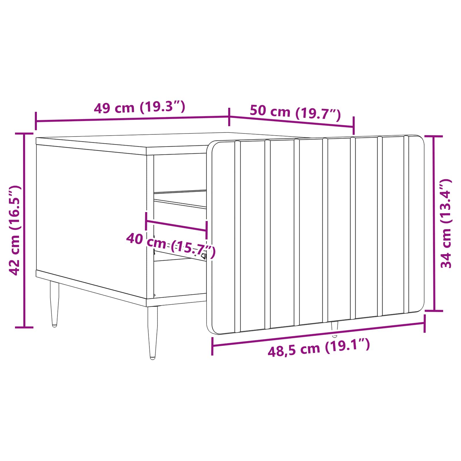 - Splošne dimenzije: 49 x 50 x 42 cm (D x Š x V)