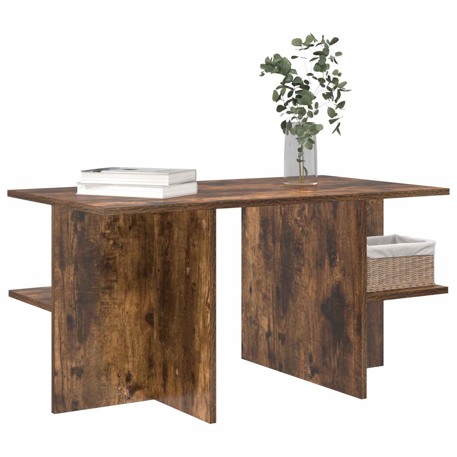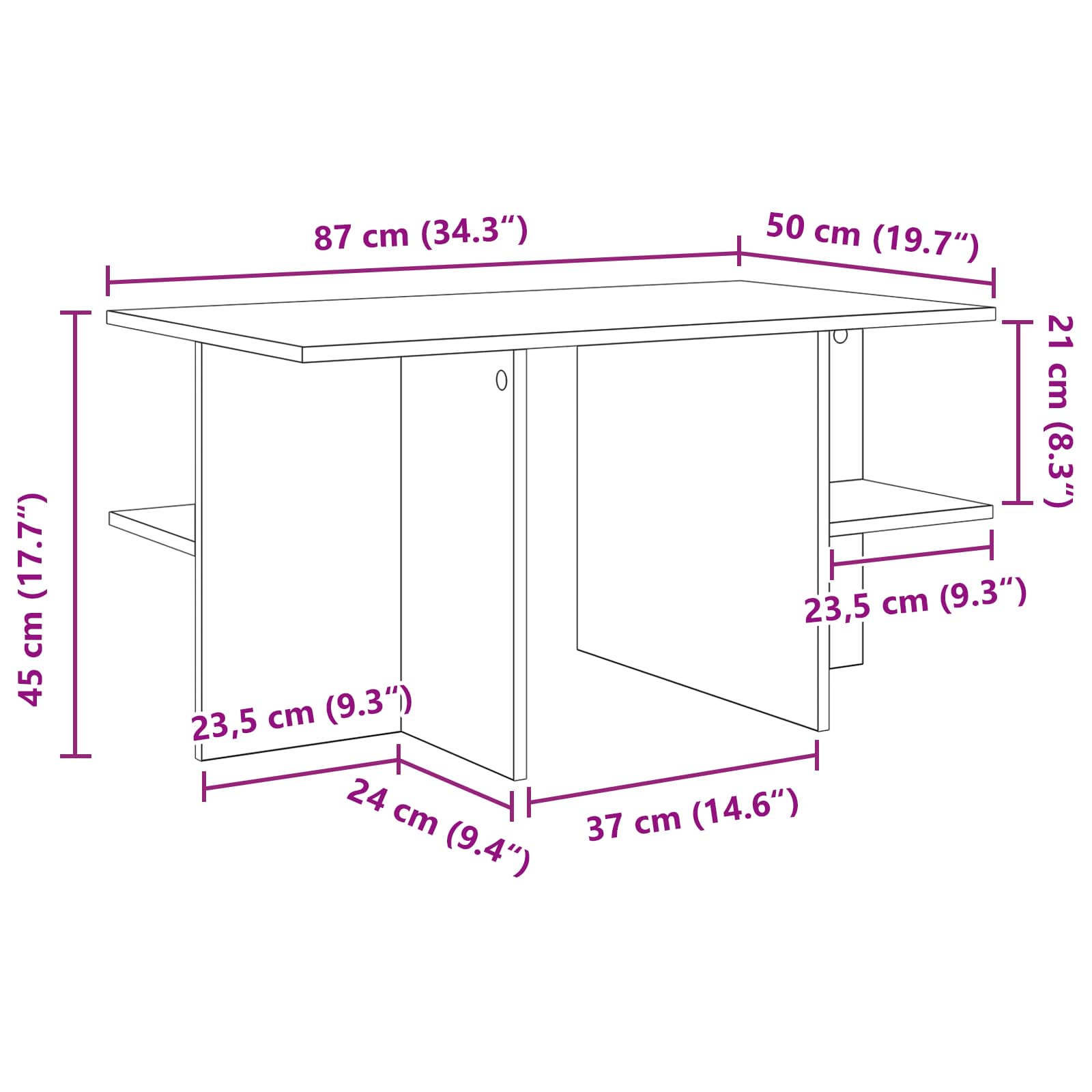 Tale klub miza združuje moderno eleganco in praktičnost za vsakdanjo rabo. Njene čiste linije in topel les ustvarjajo lepi osrednji kos za kateri koli prostor. Odlično je zasnovana za funkcionalnost in nudi veliko površino za dekoracijo, pijače ali delovne pripomočke. Njen pameten dizajn pa ponuja lepe in uporabne rešitve za shranjevanje. Gradnja iz inženirskega lesa: Ta klub miza je izdelana iz kakovostnega inženirskega lesa, ki nudi dolgo obstojnost in stil. Robustna konstrukcija in vrhunski materiali zagotavljajo stabilnost in odpornost ter omogočajo vsakodnevno uporabo, ob tem pa ostaja lepa in sofisticirana v vsakem prostoru. Obsežno shranjevanje: Pametno zasnovana za praktičnost, ta klub miza ponuja veliko površino in dve odprti polici. Te police so odlične za organizacijo knjig, revij in drugih stvari, da vse ostane na svojem mestu in vedno enostavno dosegljivo. Večnamenska uporaba: Ta klub miza se lahko prilagodi za različne prostore in potrebe. Je idealna za dnevne sobe, spalnice ali družabne prostore. Lahko služi kot osrednja točka za druženje, mesto za dekoracije ali pa enostavna površina za delanje ali neformalno uživanje ob obrokih. Njena prilagodljivost je super za vsak dom. Enostavno sestavljanje: Zasnovana za enostavno sestavljanje, paket mize vsebuje jasne navodila, ki olajšajo postopek. Logična struktura in dobro poravnani deli skrbijo za stabilne in gladke rezultate. Nizko vzdrževanje: Čiščenje je super enostavno—samo obrišite z vlažno krpo. Da ohranite njen izgled in se izognete poškodbam, ne uporabljajte ostrih kemikalij, kar zagotavlja, da miza ostane privlačna z minimalnimi napori pri vzdrževanju.