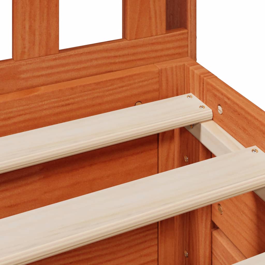 Za boljši in mirnejši spanec si privoščite to posteljo v obliki knjižne omare! Predstavlja prijeten dodatek vsaki spalnici. Stabilen in dolgotrajen okvir: Masivni borov les je znan po svoji trdnosti in vzdržljivosti. Ravni vzorci in značilne grče prispevajo k rustikalnemu šarmu.Letvičasto dno za optimalno oporo: Okvir postelje je opremljen z letvičastim dnom za oporo in zračnost vaše vzmetnice.Veliko prostora za shranjevanje: To vzglavje v obliki knjižne omare ponuja veliko prostora za shranjevanje knjig, okrasnih predmetov ali osebnih stvari, kar zmanjšuje nered v spalnici.Prihranek prostora: To vzglavje je možnost za prihranek prostora, ki lahko nadomesti potrebo po nočni omarici, pomaga kar najbolje izkoristiti prostor v spalnici in je idealno za majhne ali omejene prostore.Enostavno manevriranje: Ta predal za shranjevanje pod posteljo ima štiri kolesa, ki zagotavljajo gladko in enostavno manevriranje za drsenje noter in ven izpod postelje. Dobro je vedeti:Ta okvir postelje ima letvičasto dno in vključuje letvice.Vzmetnica ni priložena tej postelji. Ponujamo pa raznoliko izbiro vzmetnic. V naši trgovini lahko preverite, ali najdete ustrezno vzmetnico.