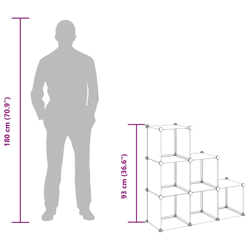 S to vsestransko kockasto omarico za shranjevanje boste kar najbolje izkoristili omejen prostor in zadovoljili vse svoje potrebe po shranjevanju. Praktičen material: Omarica za shranjevanje je izdelana iz PP plastičnih plošč, ki so vodoodporne in enostavne za vzdrževanje.Močna in stabilna struktura: Jekleni okvirji zagotavljajo trdnost in stabilnost.Uporabniku prijazen dizajn: Zaradi lahkega dizajna lahko regal za shranjevanje s priloženim lesenim kladivom sestavite glede na svoje želje. Ko ni v uporabi, lahko plošče enostavno razstavite in zložite ter prihranite prostor.Veliko prostora za shranjevanje: Ta plastična omara ima 6 modularnih kock. Prostor za shranjevanje omogoča preprosto organiziranje stvari.Široka uporaba: Omarica ima veliko prostora za shranjevanje in preprost dizajn, zato je odlična rešitev za shranjevanje v vašem domu, prenočišču in pisarni. Opomba:Maksimalna nosilnost vsake kocke je 10 kg.