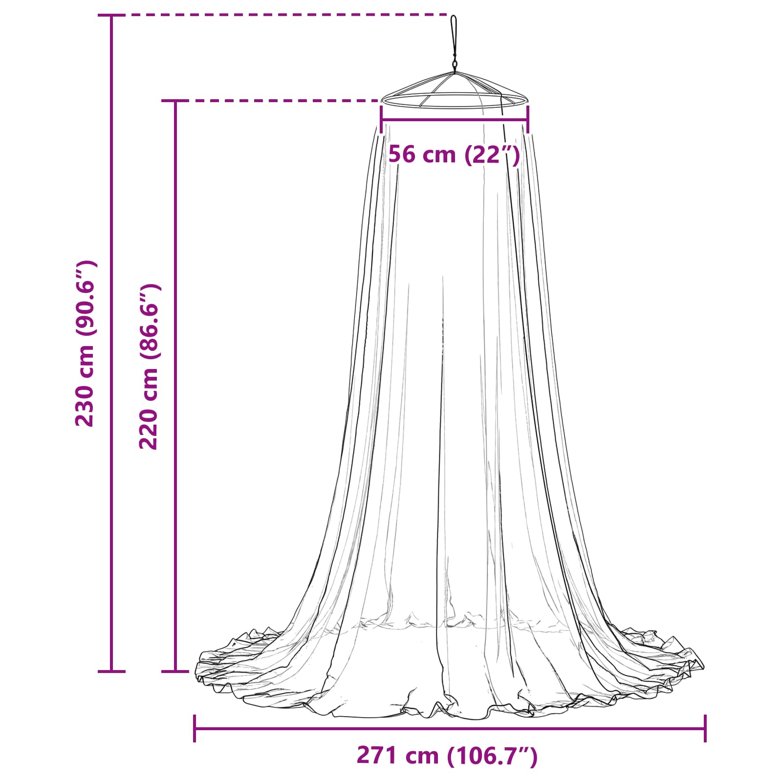 - Splošne dimenzije: 56 x 220 cm (Ø x H)