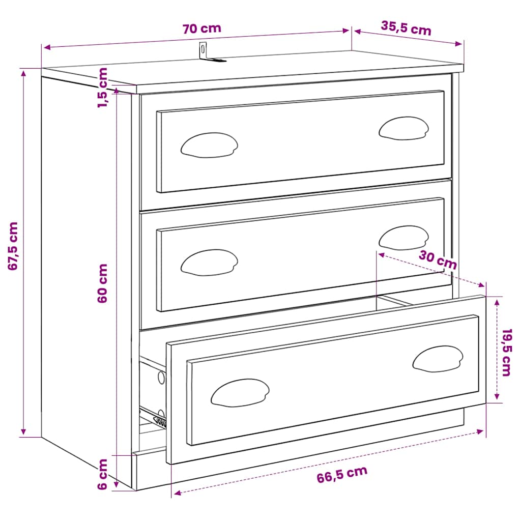 Te klasične komode z brezčasnim videzom bodo odličen dodatek za vaš dom. Vzdržljiv material: Inženirski les se ponaša z izjemno kakovostjo, gladko površino ter močjo, stabilnostjo in odpornostjo na vlago.Veliko prostora za shranjevanje: V omarici je dovolj prostora za shranjevanje, da bodo različne vsakodnevne potrebščine dobro urejene in dosegljive.Funkcija razstavljanja: Na površino omarice lahko postavite tudi svoje najljubše slike, dekoracije ali rože ter tako obogatite svoje življenje. Opozorilo:Za preprečitev prevračanja je treba ta izdelek uporabiti s priloženo napravo za pritrditev na steno.