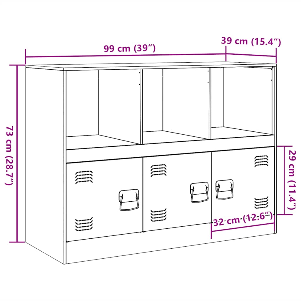 Ta trdna komoda je zasnovana tako, da bo s svojo trendovsko in praktično zasnovo osrednja točka vašega prostora. Stabilen material: Komoda je izdelana iz hladno valjanega jekla. Hladno valjano jeklo je vrsta nizkoogljičega jekla, ki se proizvaja z metodo “hladnega valjanja” in obdeluje pri skoraj običajnih sobnih temperaturah. Hladno valjano jeklo ima bolj gladko površino, večjo trdnost in natančnost. Veliko prostora za shranjevanje: Ta komoda ponuja priročen prostor za shranjevanje vaših revij, knjig, daljinskih upravljalnikov in drugih majhnih predmetov, da bodo lepo urejeni in na dosegu roke.Enostavno vzdrževanje: Mizico je enostavno očistiti z vlažno krpo, poleg tega ne potrebuje veliko vzdrževanja.Praktičen ročaj: Komoda je opremljena s 3 ročaji, ki olajšajo odpiranje in zapiranje omarice, hkrati pa jo naredijo še lepšo. Opozorilo:Da preprečite prevračanje, morate ta izdelek uporabljati z napravo za pritrditev na steno (ni priložena).