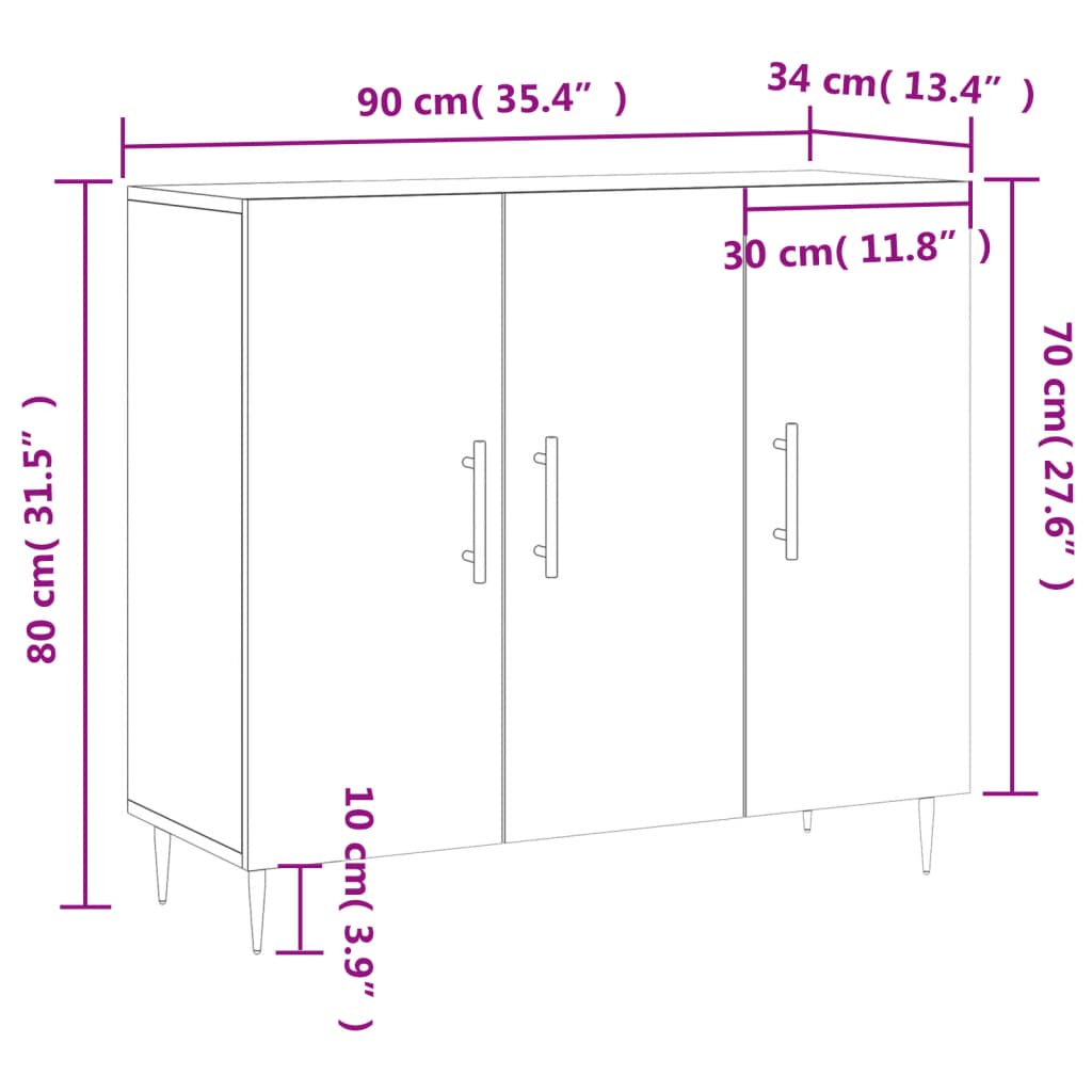 Ta moderna komoda z brezčasnim videzom je odličen dodatek za vaš dom. Vzdržljiv material: Inženirski les se ponaša z izjemno kakovostjo, gladko površino ter močjo, stabilnostjo in odpornostjo na vlago. Kovinske noge: Kovinske noge vašim notranjim prostorom dodajajo moderen in uglajen slog, hkrati pa zagotavljajo stabilnost. Veliko prostora za shranjevanje: V stranski omarici je dovolj prostora za shranjevanje, da bodo različne vsakodnevne potrebščine dobro urejene in dosegljive.Stabilna in močna površina: Zgornja površina kredence je kot nalašč za razstavljanje okrasnih predmetov, okvirjev za slike in rastlin v lončkih. Praktična vrata: Poskrbite, da bodo vaše potrebščine zaščitene pred prahom, tako da jih skrijete za vrata. Poleg tega ročaji na vratih omogočajo enostavno odpiranje omare za shranjevanje. Opozorilo:Za preprečitev prevračanja je treba ta izdelek uporabiti s priloženo napravo za pritrditev na steno.