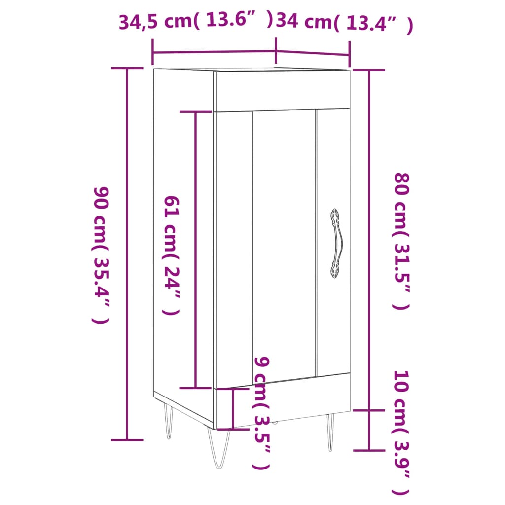 Komoda visok sijaj bela 34,5x34x90 cm inženirski les