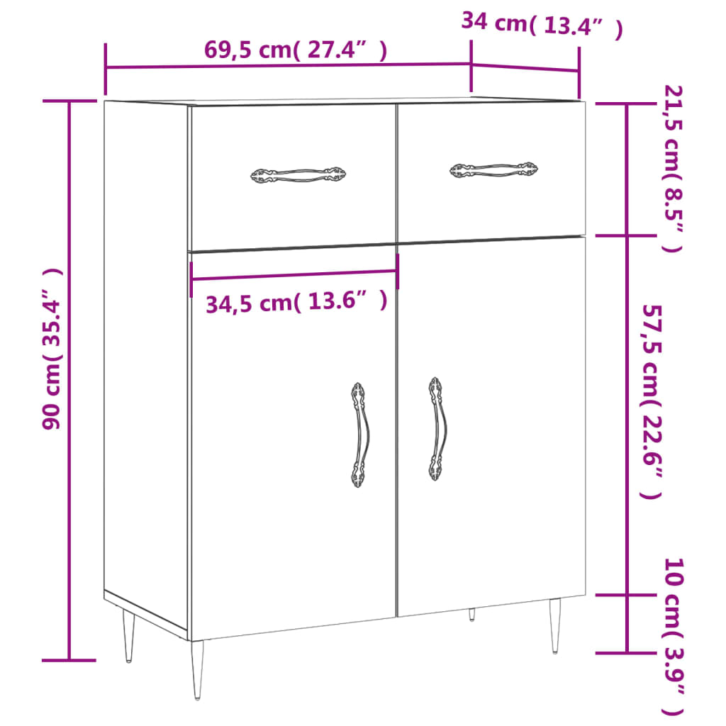 Ta moderna komoda z brezčasnim videzom je odličen dodatek za vaš dom. Vzdržljiv material: Inženirski les se ponaša z izjemno kakovostjo, gladko površino ter močjo, stabilnostjo in odpornostjo na vlago. Kovinske noge: Kovinske noge vašim notranjim prostorom dodajajo moderen in uglajen slog, hkrati pa zagotavljajo stabilnost. Veliko prostora za shranjevanje: V stranski omarici je dovolj prostora za shranjevanje, da bodo različne vsakodnevne potrebščine dobro urejene in dosegljive.Stabilna in močna površina: Zgornja površina kredence je kot nalašč za razstavljanje okrasnih predmetov, okvirjev za slike in rastlin v lončkih. Praktična vrata: Poskrbite, da bodo vaše potrebščine zaščitene pred prahom, tako da jih skrijete za vrata. Poleg tega ročaji na vratih in predalih omogočajo enostavno odpiranje omare za shranjevanje. Opozorilo:Za preprečitev prevračanja je treba ta izdelek uporabiti s priloženo napravo za pritrditev na steno.