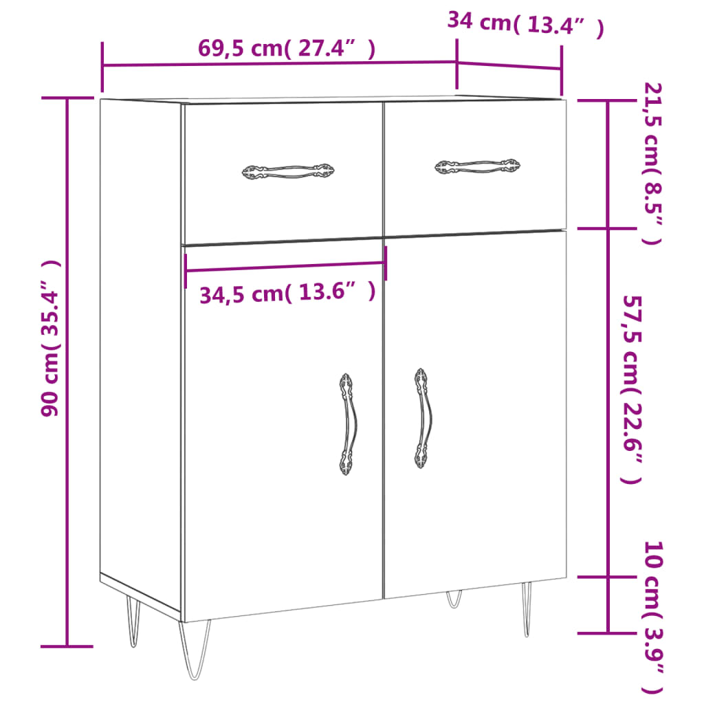 Ta moderna komoda z brezčasnim videzom je odličen dodatek za vaš dom. Vzdržljiv material: Inženirski les se ponaša z izjemno kakovostjo, gladko površino ter močjo, stabilnostjo in odpornostjo na vlago. Kovinske noge: Kovinske noge vašim notranjim prostorom dodajajo moderen in uglajen slog, hkrati pa zagotavljajo stabilnost. Veliko prostora za shranjevanje: V stranski omarici je dovolj prostora za shranjevanje, da bodo različne vsakodnevne potrebščine dobro urejene in dosegljive.Stabilna in močna površina: Zgornja površina kredence je kot nalašč za razstavljanje okrasnih predmetov, okvirjev za slike in rastlin v lončkih. Praktična vrata: Poskrbite, da bodo vaše potrebščine zaščitene pred prahom, tako da jih skrijete za vrata. Poleg tega ročaji na vratih in predalih omogočajo enostavno odpiranje omare za shranjevanje. Opozorilo:Za preprečitev prevračanja je treba ta izdelek uporabiti s priloženo napravo za pritrditev na steno.