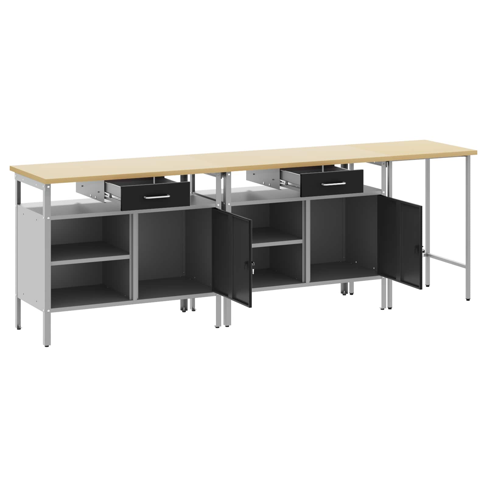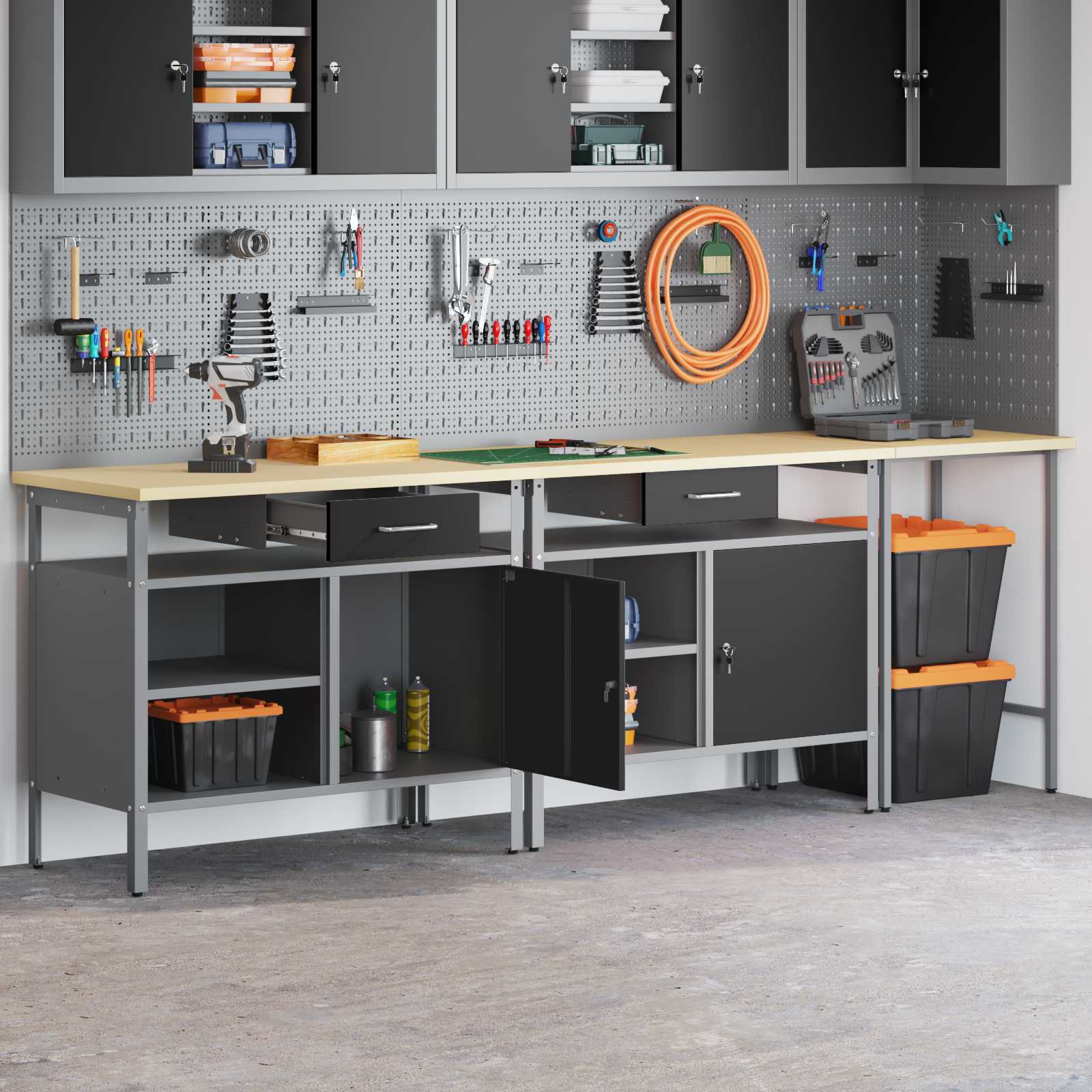 Ta jeklena delovna miza je prava kombinacija funkcionalnosti in industrijskega sloga, idealna za profesionalne delavnice in domače garaže. Pravokotna miza je zasnovana za težke naloge in ima eleganten design ter gladko površino, ki se sklada z vsakim prostorom. S kovinskimi polici za shranjevanje je miza super za organizacijo orodij in materialov – tako profesionalcem kot ljubiteljem omogoča, da so urejeni. Ta kos pohištva postane središče tvojega delovnega prostora, ki ponese profesionalizem in stil. Prašno lakirano jeklo: Trpežna jeklena konstrukcija te mize prenese težko rabo in se upira praskam. Pobarvana, daje odličen videz in jo dela zares robustno izbiro za delo, kjer sta estetika in praksa pomembni. Kovinske police: Te policami si lahko lepo urediš svoje orodje in opremo. Zasnovane za težka opravila, omogočajo, da obdržiš red in hitro najdeš, kar potrebuješ. Industrijski slog: Miza nosi industrijski pridih, ki deluje urbanistično in sodobno zahvaljujoč surovim materialom. Dodaja drzen občutek vsakemu prostoru in povezuje eleganco s funkcionalnostjo. Prilagodljiv delovni prostor: Ta miza se odlično prilega delavnicam, domačim garažam, ustvarjalnim prostorom ali profesionalnim delavnicam. Njena prilagodljivost omogoča, da jo koristiš za različne projekte, ne glede na naravo dela. Navodila za vzdrževanje: Miza zahteva zelo enostavno vzdrževanje – le redno jo obriši s suho krpo, da ohraniš njen sijaj. Izogibaj se mokrim krpam in ostalim čistilnim metodam, da ohraniš kakovost mize dolga leta.