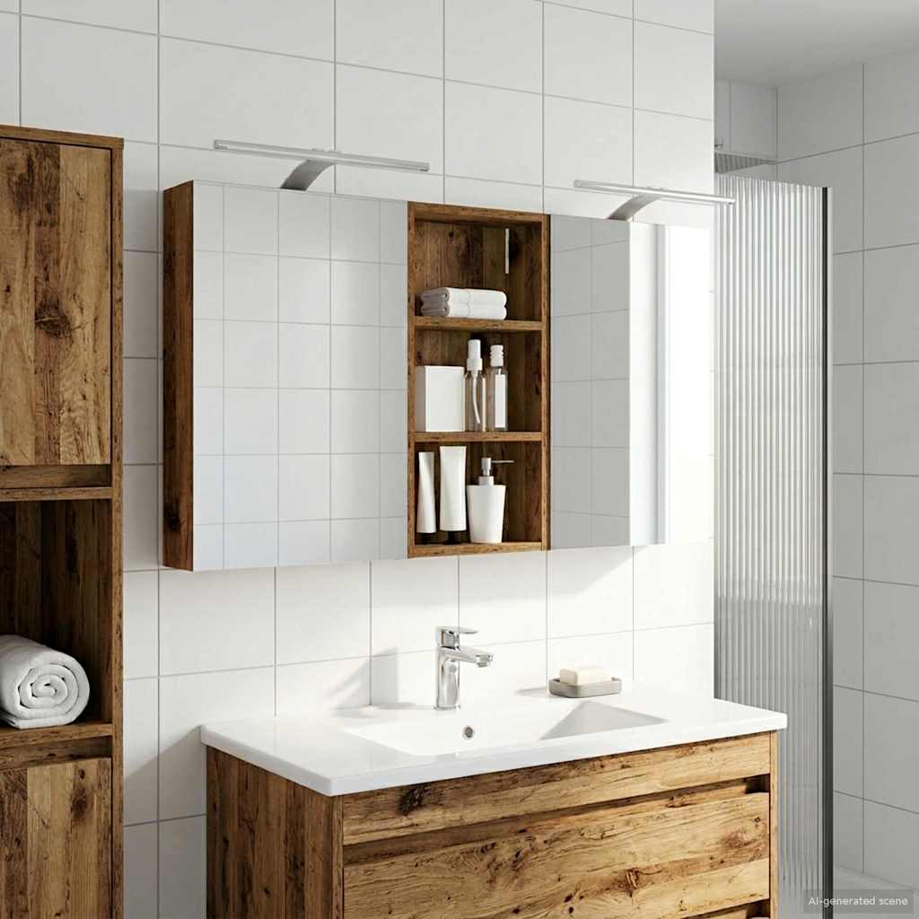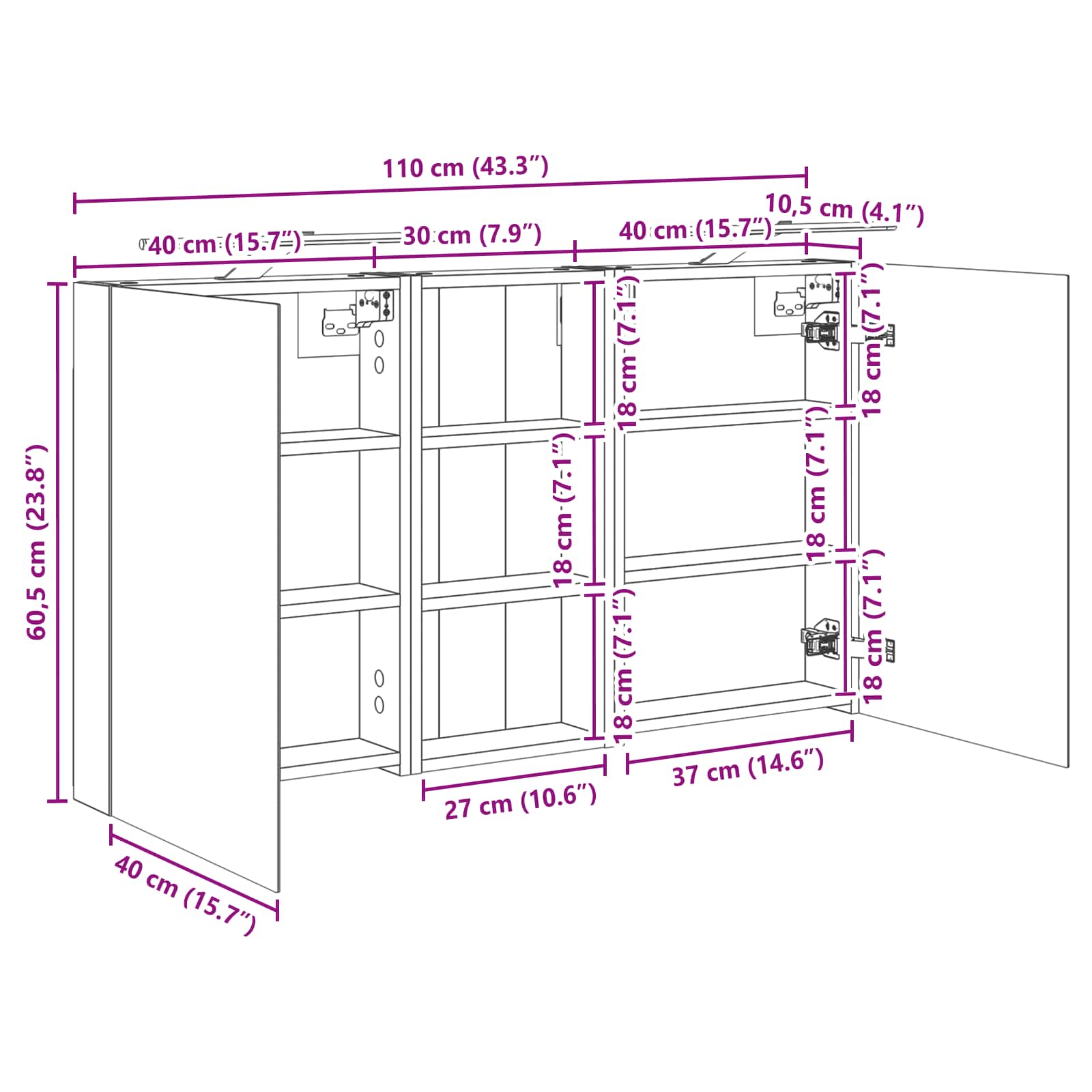 Ta moderni set kopalniških omaric je pravi primerkor for dodelane sodobne elegance, saj združuje eleganten dizajn s praktično funkcionalnostjo. Zasnovan za sodobnega lastnika, služi kot enota za shranjevanje in estetski kos opreme, ki se brez težav zlije z aktualnim videzom kopalnic. Nudi obilo prostora za shranjevanje, kar zagotavlja prostornost in enostaven dostop do potrebščin. Set omaric krepi vzdušje kopalnice z ogledali ter integrirano LED osvetlitvijo, kar ustvarja prijetno in organizirano okolje za vsakodnevne rutine. Konstrukcija iz inženirskega lesa Ta set omaric je narejen iz trpežnega inženirskega lesa, znanega po odlični stabilnosti. Material je odporen na zvijanje in poškodbe, kar zagotavlja dolgo življenjsko dobo pohištva. Gladka površina omogoča lep videz, ki ga je enostavno vzdrževati, in prispeva k celotni privlačnosti tega nizko vzdrževalnega seta. Obsežen prostor za shranjevanje Zasnovana za optimalno izkoriščenost, ta kopalniška omarica ponuja široko kapaciteto shranjevanja z več policami in vrati na tečajih. Premislena postavitev omogoča enostavno organizacijo toaletnih potrebščin, tako da je vse pri roki. Njena prostorsko učinkovita zasnova povečuje funkcionalnost kopalnice z zmanjšanjem nered. Inovativno dvosmerno ogledalo Ta omarica vsebuje dvosmerno ogledalo, ki ponuja pravo kombinacijo zasebnosti in vidljivosti. Zunanja stran deluje kot običajno ogledalo, notranja površina pa omogoča diskretno opazovanje in dodaja sofisticiranost v vsakodnevni rabi. Ta funkcija dopolnjuje moderne notranjosti s svojo dvojno funkcijo in estetsko privlačnostjo. Učinkovita LED osvetlitev Opremljena s prilagodljivimi USB napajanimi LED trakovi, omarica zagotavlja jasno, energijsko učinkovito osvetlitev. Te luči povečujejo vidnost zlasti ponoči in ustvarjajo mirno vzdušje. Idealna izbira za uporabnike, ki iščejo moderne rešitve osvetlitve v kombinaciji s funkcionalnim pohištvom. Enostavno vzdrževanje Vzdrževanje tega seta omaric je enostavno. Priporočamo uporabo mehke in suhe krpe za čiščenje površin, hkrati se je treba izogibati ostrim kemikalijam, da se ohrani integriteta materiala. Ta preprosta navodila za nego zagotavljajo, da omarica ostane brezčasna ter funkcionalna stalnica v vaši kopalnici. Uporabljajte samo certificirani vhod DC 5 V. Višja napetost lahko povzroči pregrevanje in poškoduje napravo ter lahko povzroči potencialno nevarnost pregrevanja in požara. Izdelka ne priključujte na noben drug napajalnik razen na tistega, ki je opisan v priročniku, na tablici z imenom ali posebej priporočen s strani vidaXL. Te naprave ne smejo uporabljati otroci, stari 14 let ali mlajši, ter osebe z zmanjšanimi fizičnimi, senzoričnimi ali duševnimi sposobnostmi ali s pomanjkanjem izkušenj in znanja o uporabi elektronskih naprav. Elektrika je nevarna. Poškodbe in nepravilna namestitev, uporaba ali sprememba (zamenjava posameznih komponent) lahko povzročijo poškodbe enote, kar lahko posledično povzroči električni udar in nevarnost za uporabnka. Izdelka ne uporabljajte v eksplozivnem okolju, na primer v prisotnosti vnetljivih tekočin, plinov in prahu ali pri temperaturah nad 50 stopinj Celzija ali več. Ne vklapljajte izdelka, če sta povezovalni kabel ali napajalnik vidno poškodovana. Če je zunanji gibljivi kabel ali kabel te svetilke poškodovan, ga mora zamenjati izključno proizvajalec ali njegov serviser ali podobno usposobljena oseba, da se izognete nevarnosti. Med namestitvijo in vzdrževanjem izklopite napajanje. Prepričajte se, da so žarnice ohlajene. Svetlobni vir te svetilke ni zamenljiv; ko vir svetlobe doseže konec življenjske dobe, je treba zamenjati celotno svetilko. Samo za uporabo v zaprtih prostorih, tega izdelka ne uporabljajte na prostem.