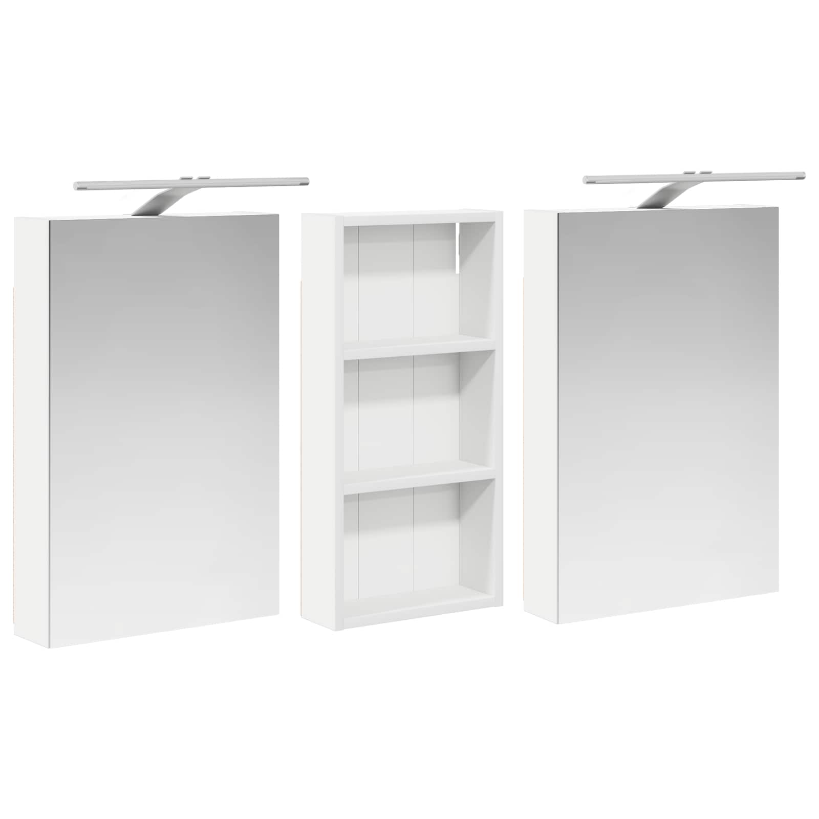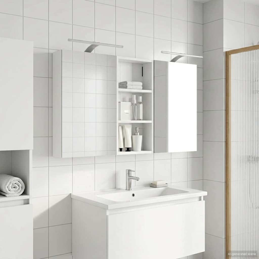 Ta moderni set kopalniških omaric je pravi primerkor for dodelane sodobne elegance, saj združuje eleganten dizajn s praktično funkcionalnostjo. Zasnovan za sodobnega lastnika, služi kot enota za shranjevanje in estetski kos opreme, ki se brez težav zlije z aktualnim videzom kopalnic. Nudi obilo prostora za shranjevanje, kar zagotavlja prostornost in enostaven dostop do potrebščin. Set omaric krepi vzdušje kopalnice z ogledali ter integrirano LED osvetlitvijo, kar ustvarja prijetno in organizirano okolje za vsakodnevne rutine. Konstrukcija iz inženirskega lesa Ta set omaric je narejen iz trpežnega inženirskega lesa, znanega po odlični stabilnosti. Material je odporen na zvijanje in poškodbe, kar zagotavlja dolgo življenjsko dobo pohištva. Gladka površina omogoča lep videz, ki ga je enostavno vzdrževati, in prispeva k celotni privlačnosti tega nizko vzdrževalnega seta. Obsežen prostor za shranjevanje Zasnovana za optimalno izkoriščenost, ta kopalniška omarica ponuja široko kapaciteto shranjevanja z več policami in vrati na tečajih. Premislena postavitev omogoča enostavno organizacijo toaletnih potrebščin, tako da je vse pri roki. Njena prostorsko učinkovita zasnova povečuje funkcionalnost kopalnice z zmanjšanjem nered. Inovativno dvosmerno ogledalo Ta omarica vsebuje dvosmerno ogledalo, ki ponuja pravo kombinacijo zasebnosti in vidljivosti. Zunanja stran deluje kot običajno ogledalo, notranja površina pa omogoča diskretno opazovanje in dodaja sofisticiranost v vsakodnevni rabi. Ta funkcija dopolnjuje moderne notranjosti s svojo dvojno funkcijo in estetsko privlačnostjo. Učinkovita LED osvetlitev Opremljena s prilagodljivimi USB napajanimi LED trakovi, omarica zagotavlja jasno, energijsko učinkovito osvetlitev. Te luči povečujejo vidnost zlasti ponoči in ustvarjajo mirno vzdušje. Idealna izbira za uporabnike, ki iščejo moderne rešitve osvetlitve v kombinaciji s funkcionalnim pohištvom. Enostavno vzdrževanje Vzdrževanje tega seta omaric je enostavno. Priporočamo uporabo mehke in suhe krpe za čiščenje površin, hkrati se je treba izogibati ostrim kemikalijam, da se ohrani integriteta materiala. Ta preprosta navodila za nego zagotavljajo, da omarica ostane brezčasna ter funkcionalna stalnica v vaši kopalnici. Uporabljajte samo certificirani vhod DC 5 V. Višja napetost lahko povzroči pregrevanje in poškoduje napravo ter lahko povzroči potencialno nevarnost pregrevanja in požara. Izdelka ne priključujte na noben drug napajalnik razen na tistega, ki je opisan v priročniku, na tablici z imenom ali posebej priporočen s strani vidaXL. Te naprave ne smejo uporabljati otroci, stari 14 let ali mlajši, ter osebe z zmanjšanimi fizičnimi, senzoričnimi ali duševnimi sposobnostmi ali s pomanjkanjem izkušenj in znanja o uporabi elektronskih naprav. Elektrika je nevarna. Poškodbe in nepravilna namestitev, uporaba ali sprememba (zamenjava posameznih komponent) lahko povzročijo poškodbe enote, kar lahko posledično povzroči električni udar in nevarnost za uporabnka. Izdelka ne uporabljajte v eksplozivnem okolju, na primer v prisotnosti vnetljivih tekočin, plinov in prahu ali pri temperaturah nad 50 stopinj Celzija ali več. Ne vklapljajte izdelka, če sta povezovalni kabel ali napajalnik vidno poškodovana. Če je zunanji gibljivi kabel ali kabel te svetilke poškodovan, ga mora zamenjati izključno proizvajalec ali njegov serviser ali podobno usposobljena oseba, da se izognete nevarnosti. Med namestitvijo in vzdrževanjem izklopite napajanje. Prepričajte se, da so žarnice ohlajene. Svetlobni vir te svetilke ni zamenljiv; ko vir svetlobe doseže konec življenjske dobe, je treba zamenjati celotno svetilko. Samo za uporabo v zaprtih prostorih, tega izdelka ne uporabljajte na prostem.
