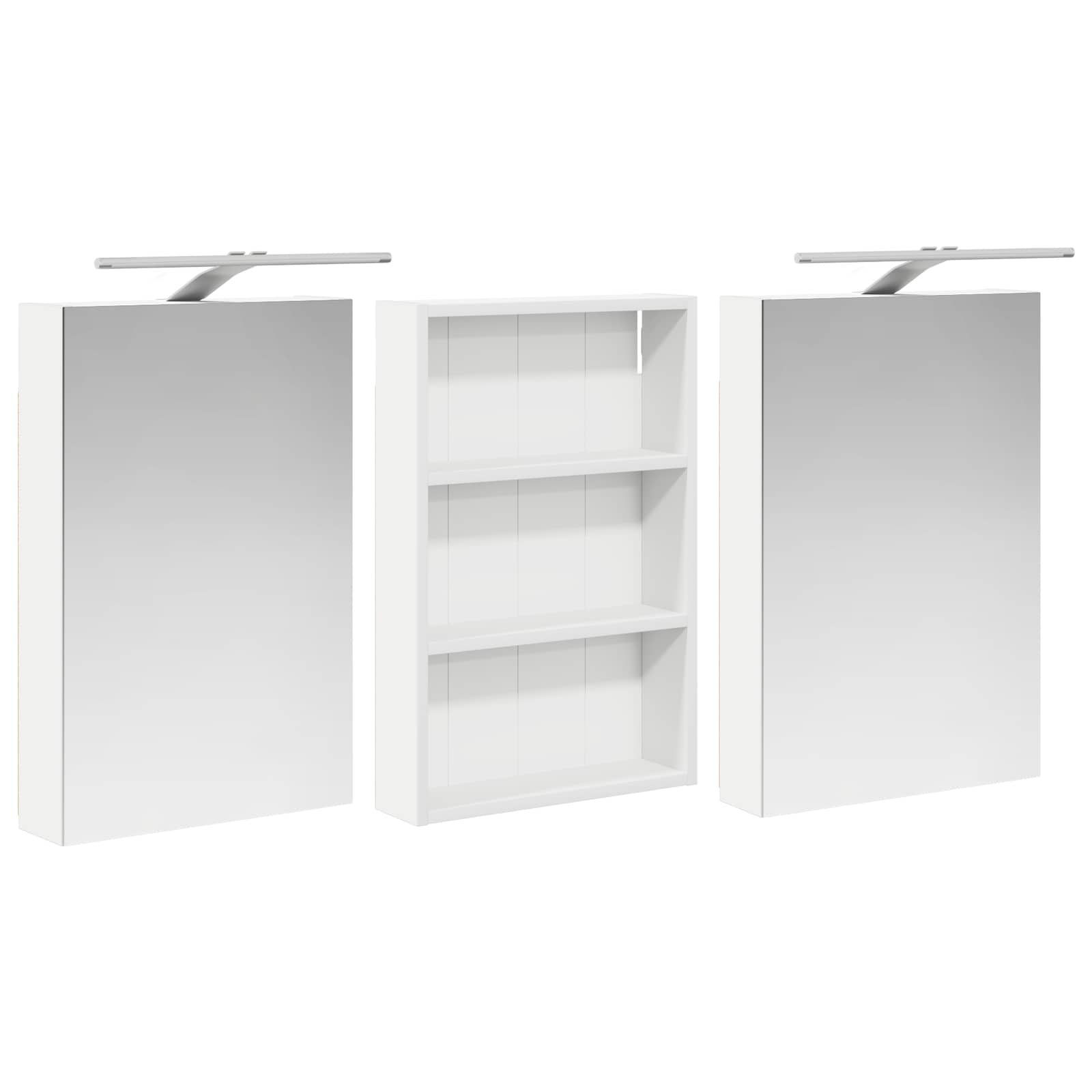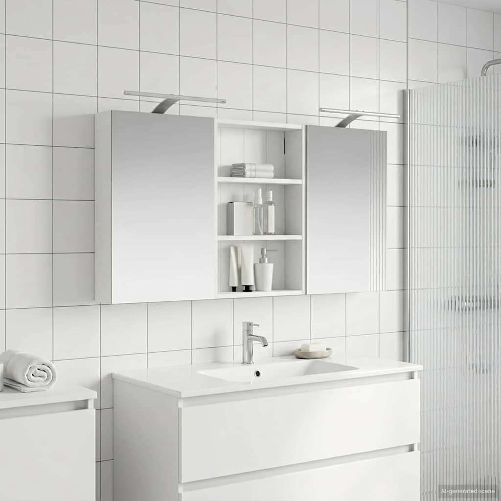 Ta moderni set kopalniških omaric je pravi primerkor for dodelane sodobne elegance, saj združuje eleganten dizajn s praktično funkcionalnostjo. Zasnovan za sodobnega lastnika, služi kot enota za shranjevanje in estetski kos opreme, ki se brez težav zlije z aktualnim videzom kopalnic. Nudi obilo prostora za shranjevanje, kar zagotavlja prostornost in enostaven dostop do potrebščin. Set omaric krepi vzdušje kopalnice z ogledali ter integrirano LED osvetlitvijo, kar ustvarja prijetno in organizirano okolje za vsakodnevne rutine. Konstrukcija iz inženirskega lesa Ta set omaric je narejen iz trpežnega inženirskega lesa, znanega po odlični stabilnosti. Material je odporen na zvijanje in poškodbe, kar zagotavlja dolgo življenjsko dobo pohištva. Gladka površina omogoča lep videz, ki ga je enostavno vzdrževati, in prispeva k celotni privlačnosti tega nizko vzdrževalnega seta. Obsežen prostor za shranjevanje Zasnovana za optimalno izkoriščenost, ta kopalniška omarica ponuja široko kapaciteto shranjevanja z več policami in vrati na tečajih. Premislena postavitev omogoča enostavno organizacijo toaletnih potrebščin, tako da je vse pri roki. Njena prostorsko učinkovita zasnova povečuje funkcionalnost kopalnice z zmanjšanjem nered. Inovativno dvosmerno ogledalo Ta omarica vsebuje dvosmerno ogledalo, ki ponuja pravo kombinacijo zasebnosti in vidljivosti. Zunanja stran deluje kot običajno ogledalo, notranja površina pa omogoča diskretno opazovanje in dodaja sofisticiranost v vsakodnevni rabi. Ta funkcija dopolnjuje moderne notranjosti s svojo dvojno funkcijo in estetsko privlačnostjo. Učinkovita LED osvetlitev Opremljena s prilagodljivimi USB napajanimi LED trakovi, omarica zagotavlja jasno, energijsko učinkovito osvetlitev. Te luči povečujejo vidnost zlasti ponoči in ustvarjajo mirno vzdušje. Idealna izbira za uporabnike, ki iščejo moderne rešitve osvetlitve v kombinaciji s funkcionalnim pohištvom. Enostavno vzdrževanje Vzdrževanje tega seta omaric je enostavno. Priporočamo uporabo mehke in suhe krpe za čiščenje površin, hkrati se je treba izogibati ostrim kemikalijam, da se ohrani integriteta materiala. Ta preprosta navodila za nego zagotavljajo, da omarica ostane brezčasna ter funkcionalna stalnica v vaši kopalnici. Uporabljajte samo certificirani vhod DC 5 V. Višja napetost lahko povzroči pregrevanje in poškoduje napravo ter lahko povzroči potencialno nevarnost pregrevanja in požara. Izdelka ne priključujte na noben drug napajalnik razen na tistega, ki je opisan v priročniku, na tablici z imenom ali posebej priporočen s strani vidaXL. Te naprave ne smejo uporabljati otroci, stari 14 let ali mlajši, ter osebe z zmanjšanimi fizičnimi, senzoričnimi ali duševnimi sposobnostmi ali s pomanjkanjem izkušenj in znanja o uporabi elektronskih naprav. Elektrika je nevarna. Poškodbe in nepravilna namestitev, uporaba ali sprememba (zamenjava posameznih komponent) lahko povzročijo poškodbe enote, kar lahko posledično povzroči električni udar in nevarnost za uporabnka. Izdelka ne uporabljajte v eksplozivnem okolju, na primer v prisotnosti vnetljivih tekočin, plinov in prahu ali pri temperaturah nad 50 stopinj Celzija ali več. Ne vklapljajte izdelka, če sta povezovalni kabel ali napajalnik vidno poškodovana. Če je zunanji gibljivi kabel ali kabel te svetilke poškodovan, ga mora zamenjati izključno proizvajalec ali njegov serviser ali podobno usposobljena oseba, da se izognete nevarnosti. Med namestitvijo in vzdrževanjem izklopite napajanje. Prepričajte se, da so žarnice ohlajene. Svetlobni vir te svetilke ni zamenljiv; ko vir svetlobe doseže konec življenjske dobe, je treba zamenjati celotno svetilko. Samo za uporabo v zaprtih prostorih, tega izdelka ne uporabljajte na prostem.