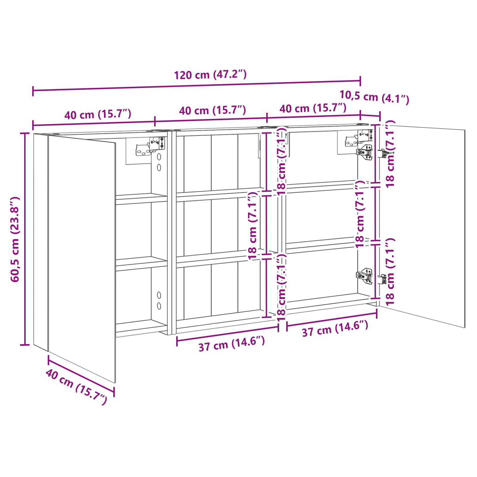 - Splošne dimenzije: 40 x 10,5 x 60,5 cm (D x Š x V)