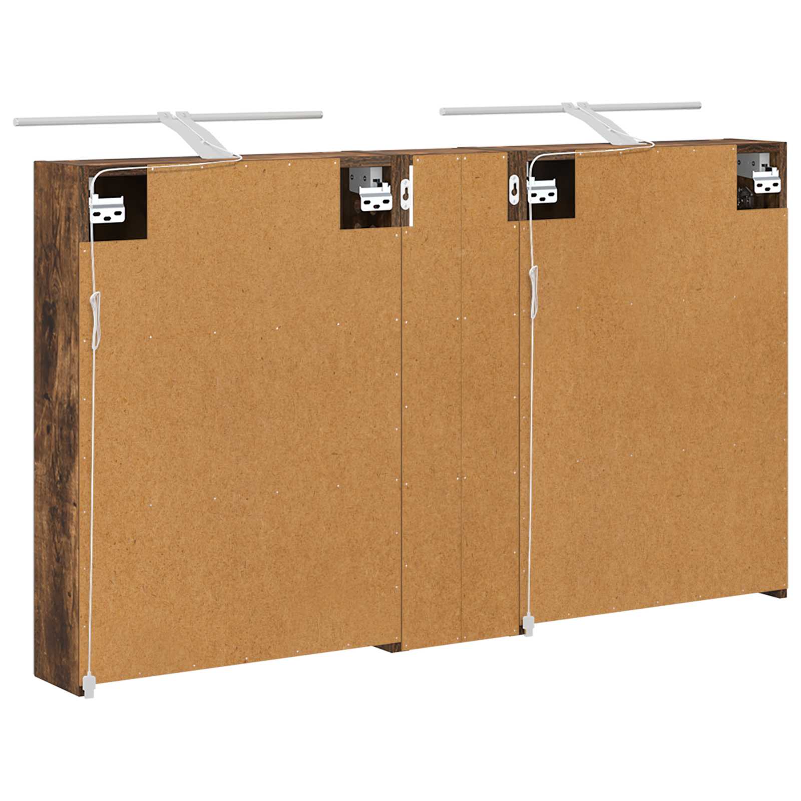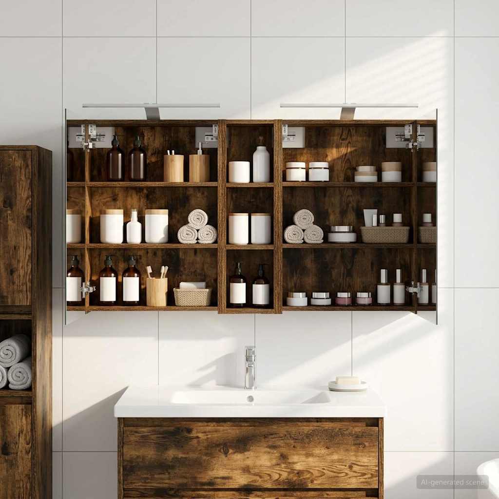 Ta moderni set kopalniških omaric je pravi primerkor for dodelane sodobne elegance, saj združuje eleganten dizajn s praktično funkcionalnostjo. Zasnovan za sodobnega lastnika, služi kot enota za shranjevanje in estetski kos opreme, ki se brez težav zlije z aktualnim videzom kopalnic. Nudi obilo prostora za shranjevanje, kar zagotavlja prostornost in enostaven dostop do potrebščin. Set omaric krepi vzdušje kopalnice z ogledali ter integrirano LED osvetlitvijo, kar ustvarja prijetno in organizirano okolje za vsakodnevne rutine. Konstrukcija iz inženirskega lesa Ta set omaric je narejen iz trpežnega inženirskega lesa, znanega po odlični stabilnosti. Material je odporen na zvijanje in poškodbe, kar zagotavlja dolgo življenjsko dobo pohištva. Gladka površina omogoča lep videz, ki ga je enostavno vzdrževati, in prispeva k celotni privlačnosti tega nizko vzdrževalnega seta. Obsežen prostor za shranjevanje Zasnovana za optimalno izkoriščenost, ta kopalniška omarica ponuja široko kapaciteto shranjevanja z več policami in vrati na tečajih. Premislena postavitev omogoča enostavno organizacijo toaletnih potrebščin, tako da je vse pri roki. Njena prostorsko učinkovita zasnova povečuje funkcionalnost kopalnice z zmanjšanjem nered. Inovativno dvosmerno ogledalo Ta omarica vsebuje dvosmerno ogledalo, ki ponuja pravo kombinacijo zasebnosti in vidljivosti. Zunanja stran deluje kot običajno ogledalo, notranja površina pa omogoča diskretno opazovanje in dodaja sofisticiranost v vsakodnevni rabi. Ta funkcija dopolnjuje moderne notranjosti s svojo dvojno funkcijo in estetsko privlačnostjo. Učinkovita LED osvetlitev Opremljena s prilagodljivimi USB napajanimi LED trakovi, omarica zagotavlja jasno, energijsko učinkovito osvetlitev. Te luči povečujejo vidnost zlasti ponoči in ustvarjajo mirno vzdušje. Idealna izbira za uporabnike, ki iščejo moderne rešitve osvetlitve v kombinaciji s funkcionalnim pohištvom. Enostavno vzdrževanje Vzdrževanje tega seta omaric je enostavno. Priporočamo uporabo mehke in suhe krpe za čiščenje površin, hkrati se je treba izogibati ostrim kemikalijam, da se ohrani integriteta materiala. Ta preprosta navodila za nego zagotavljajo, da omarica ostane brezčasna ter funkcionalna stalnica v vaši kopalnici. Uporabljajte samo certificirani vhod DC 5 V. Višja napetost lahko povzroči pregrevanje in poškoduje napravo ter lahko povzroči potencialno nevarnost pregrevanja in požara. Izdelka ne priključujte na noben drug napajalnik razen na tistega, ki je opisan v priročniku, na tablici z imenom ali posebej priporočen s strani vidaXL. Te naprave ne smejo uporabljati otroci, stari 14 let ali mlajši, ter osebe z zmanjšanimi fizičnimi, senzoričnimi ali duševnimi sposobnostmi ali s pomanjkanjem izkušenj in znanja o uporabi elektronskih naprav. Elektrika je nevarna. Poškodbe in nepravilna namestitev, uporaba ali sprememba (zamenjava posameznih komponent) lahko povzročijo poškodbe enote, kar lahko posledično povzroči električni udar in nevarnost za uporabnka. Izdelka ne uporabljajte v eksplozivnem okolju, na primer v prisotnosti vnetljivih tekočin, plinov in prahu ali pri temperaturah nad 50 stopinj Celzija ali več. Ne vklapljajte izdelka, če sta povezovalni kabel ali napajalnik vidno poškodovana. Če je zunanji gibljivi kabel ali kabel te svetilke poškodovan, ga mora zamenjati izključno proizvajalec ali njegov serviser ali podobno usposobljena oseba, da se izognete nevarnosti. Med namestitvijo in vzdrževanjem izklopite napajanje. Prepričajte se, da so žarnice ohlajene. Svetlobni vir te svetilke ni zamenljiv; ko vir svetlobe doseže konec življenjske dobe, je treba zamenjati celotno svetilko. Samo za uporabo v zaprtih prostorih, tega izdelka ne uporabljajte na prostem.