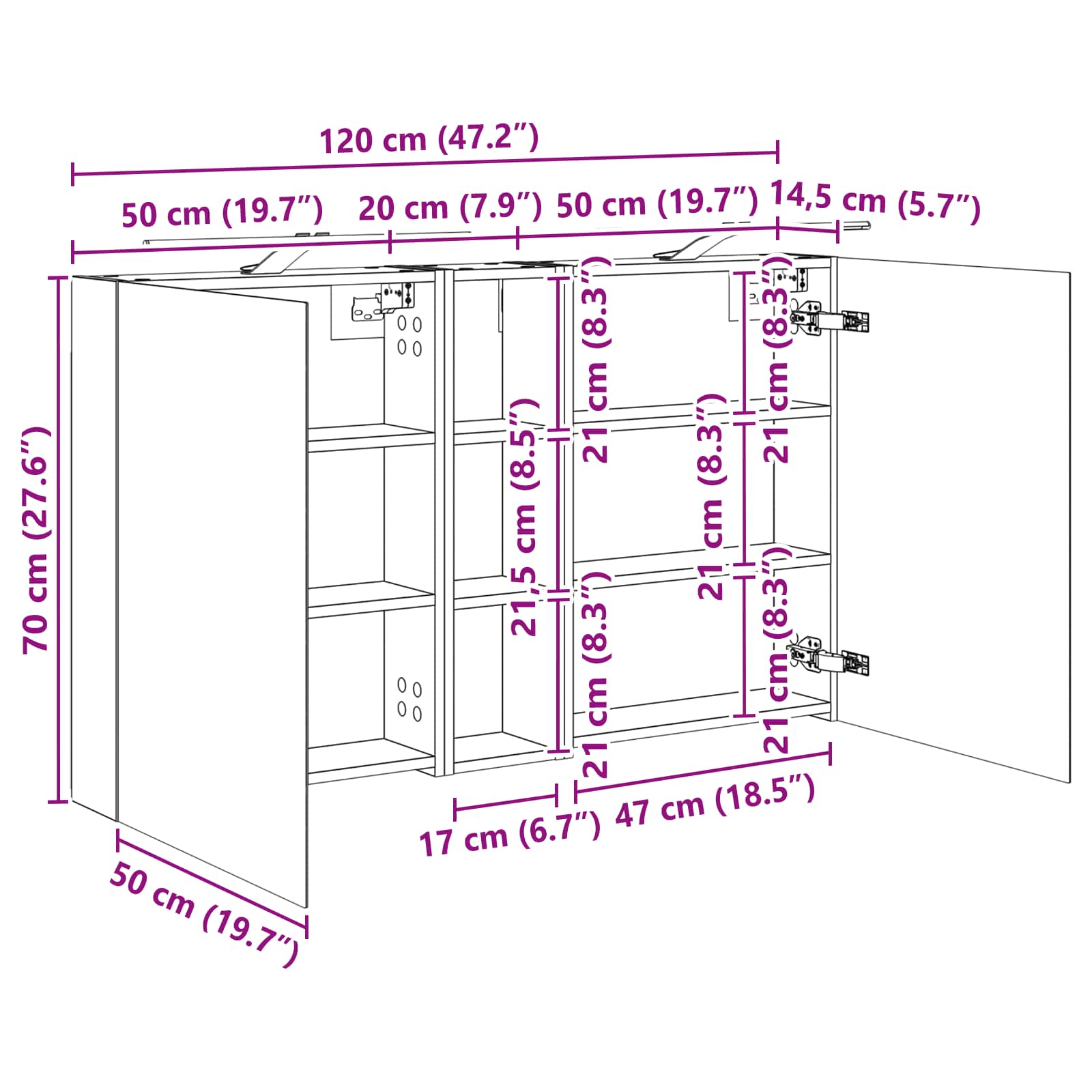 Ta moderni set kopalniških omaric je pravi primerkor for dodelane sodobne elegance, saj združuje eleganten dizajn s praktično funkcionalnostjo. Zasnovan za sodobnega lastnika, služi kot enota za shranjevanje in estetski kos opreme, ki se brez težav zlije z aktualnim videzom kopalnic. Nudi obilo prostora za shranjevanje, kar zagotavlja prostornost in enostaven dostop do potrebščin. Set omaric krepi vzdušje kopalnice z ogledali ter integrirano LED osvetlitvijo, kar ustvarja prijetno in organizirano okolje za vsakodnevne rutine. Konstrukcija iz inženirskega lesa Ta set omaric je narejen iz trpežnega inženirskega lesa, znanega po odlični stabilnosti. Material je odporen na zvijanje in poškodbe, kar zagotavlja dolgo življenjsko dobo pohištva. Gladka površina omogoča lep videz, ki ga je enostavno vzdrževati, in prispeva k celotni privlačnosti tega nizko vzdrževalnega seta. Obsežen prostor za shranjevanje Zasnovana za optimalno izkoriščenost, ta kopalniška omarica ponuja široko kapaciteto shranjevanja z več policami in vrati na tečajih. Premislena postavitev omogoča enostavno organizacijo toaletnih potrebščin, tako da je vse pri roki. Njena prostorsko učinkovita zasnova povečuje funkcionalnost kopalnice z zmanjšanjem nered. Inovativno dvosmerno ogledalo Ta omarica vsebuje dvosmerno ogledalo, ki ponuja pravo kombinacijo zasebnosti in vidljivosti. Zunanja stran deluje kot običajno ogledalo, notranja površina pa omogoča diskretno opazovanje in dodaja sofisticiranost v vsakodnevni rabi. Ta funkcija dopolnjuje moderne notranjosti s svojo dvojno funkcijo in estetsko privlačnostjo. Učinkovita LED osvetlitev Opremljena s prilagodljivimi USB napajanimi LED trakovi, omarica zagotavlja jasno, energijsko učinkovito osvetlitev. Te luči povečujejo vidnost zlasti ponoči in ustvarjajo mirno vzdušje. Idealna izbira za uporabnike, ki iščejo moderne rešitve osvetlitve v kombinaciji s funkcionalnim pohištvom. Enostavno vzdrževanje Vzdrževanje tega seta omaric je enostavno. Priporočamo uporabo mehke in suhe krpe za čiščenje površin, hkrati se je treba izogibati ostrim kemikalijam, da se ohrani integriteta materiala. Ta preprosta navodila za nego zagotavljajo, da omarica ostane brezčasna ter funkcionalna stalnica v vaši kopalnici. Uporabljajte samo certificirani vhod DC 5 V. Višja napetost lahko povzroči pregrevanje in poškoduje napravo ter lahko povzroči potencialno nevarnost pregrevanja in požara. Izdelka ne priključujte na noben drug napajalnik razen na tistega, ki je opisan v priročniku, na tablici z imenom ali posebej priporočen s strani vidaXL. Te naprave ne smejo uporabljati otroci, stari 14 let ali mlajši, ter osebe z zmanjšanimi fizičnimi, senzoričnimi ali duševnimi sposobnostmi ali s pomanjkanjem izkušenj in znanja o uporabi elektronskih naprav. Elektrika je nevarna. Poškodbe in nepravilna namestitev, uporaba ali sprememba (zamenjava posameznih komponent) lahko povzročijo poškodbe enote, kar lahko posledično povzroči električni udar in nevarnost za uporabnka. Izdelka ne uporabljajte v eksplozivnem okolju, na primer v prisotnosti vnetljivih tekočin, plinov in prahu ali pri temperaturah nad 50 stopinj Celzija ali več. Ne vklapljajte izdelka, če sta povezovalni kabel ali napajalnik vidno poškodovana. Če je zunanji gibljivi kabel ali kabel te svetilke poškodovan, ga mora zamenjati izključno proizvajalec ali njegov serviser ali podobno usposobljena oseba, da se izognete nevarnosti. Med namestitvijo in vzdrževanjem izklopite napajanje. Prepričajte se, da so žarnice ohlajene. Svetlobni vir te svetilke ni zamenljiv; ko vir svetlobe doseže konec življenjske dobe, je treba zamenjati celotno svetilko. Samo za uporabo v zaprtih prostorih, tega izdelka ne uporabljajte na prostem.