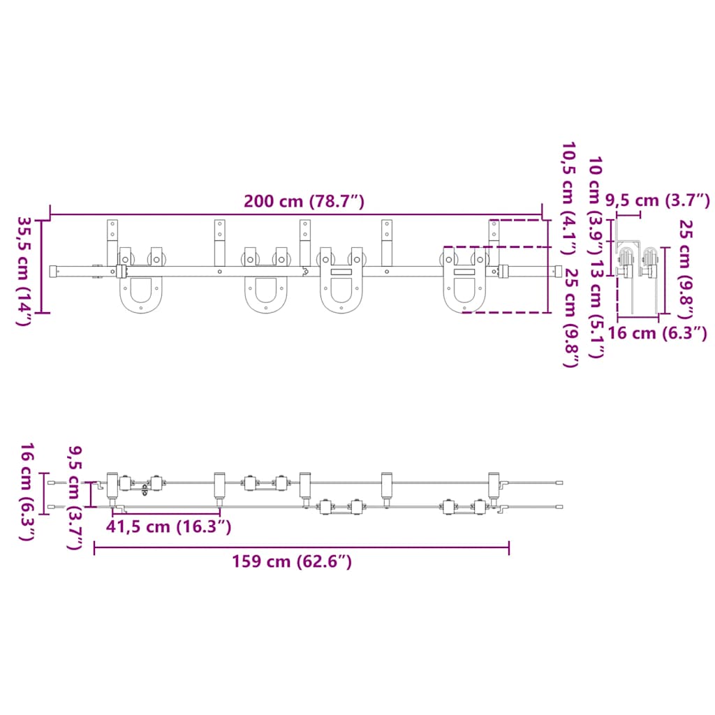 S tem kompletom okovja za drsna vrata lahko preprosto namestite dvojne vodila za par vrat, ki se pomikajo pred in za seboj. Varno in zanesljivo: Zaradi notranjih ležajev bodo vaša vrata drsela gladko in tiho. Priložene so tudi blokade za vrata, ki preprečujejo iztirjanje koles, gumijasta tesnila pa blažijo udarce koles in zmanjšujejo hrup.Težek material: Material: prašno lakirano jeklo je močno, stabilno, trajno in odporno na korozijo, kar zagotavlja dolgotrajno delovanje.Idealno za dvojna skednjasta vrata: Kadar je prostor na steni omejen, lahko s kompletom obvoznega nosilca za skedenjska vrata dve skedenjski vrati neodvisno drsita po dveh vodilih, ne da bi potrebovali dodatno razdaljo.Enostavna namestitev: Ta komplet okovja za drsna vrata je mogoče enostavno namestiti na vrata skednja s priloženimi montažnimi pripomočki, zato je namestitev enostavna.Široka uporaba: Ta komplet nosilcev za skodlasta vrata omogoča, da ena vrata zdrsnejo čez druga, zato je kot nalašč za omare, shrambe ali morda celo več odprtin na isti steni. Dobro je vedeti:Dobava vključuje samo komplet okovja za drsna vrata. Vrata niso vključena v dobavo.